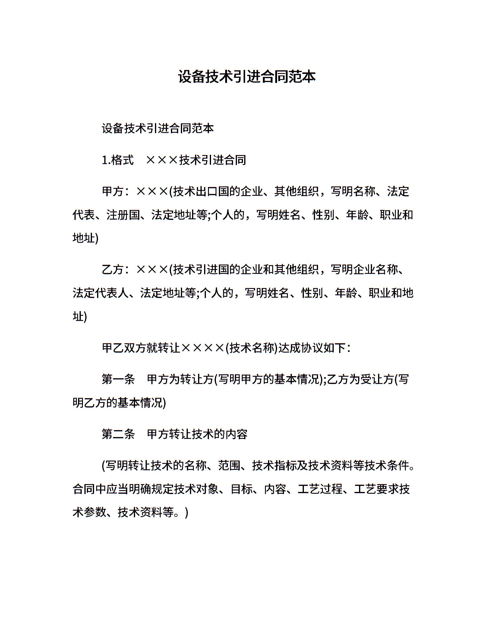 设备技术引进合同范本