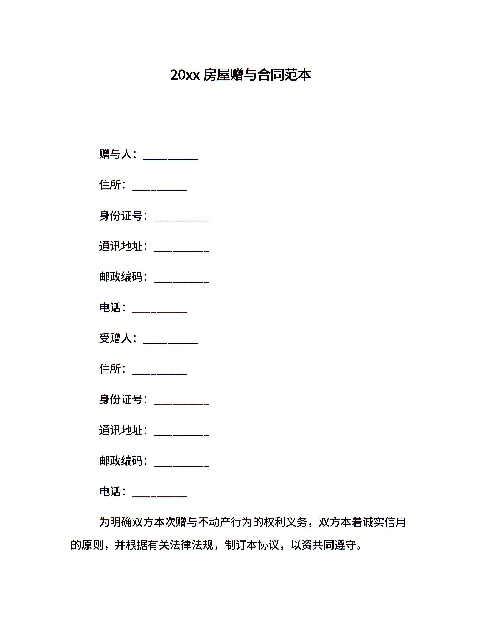 20xx房屋赠与合同范本