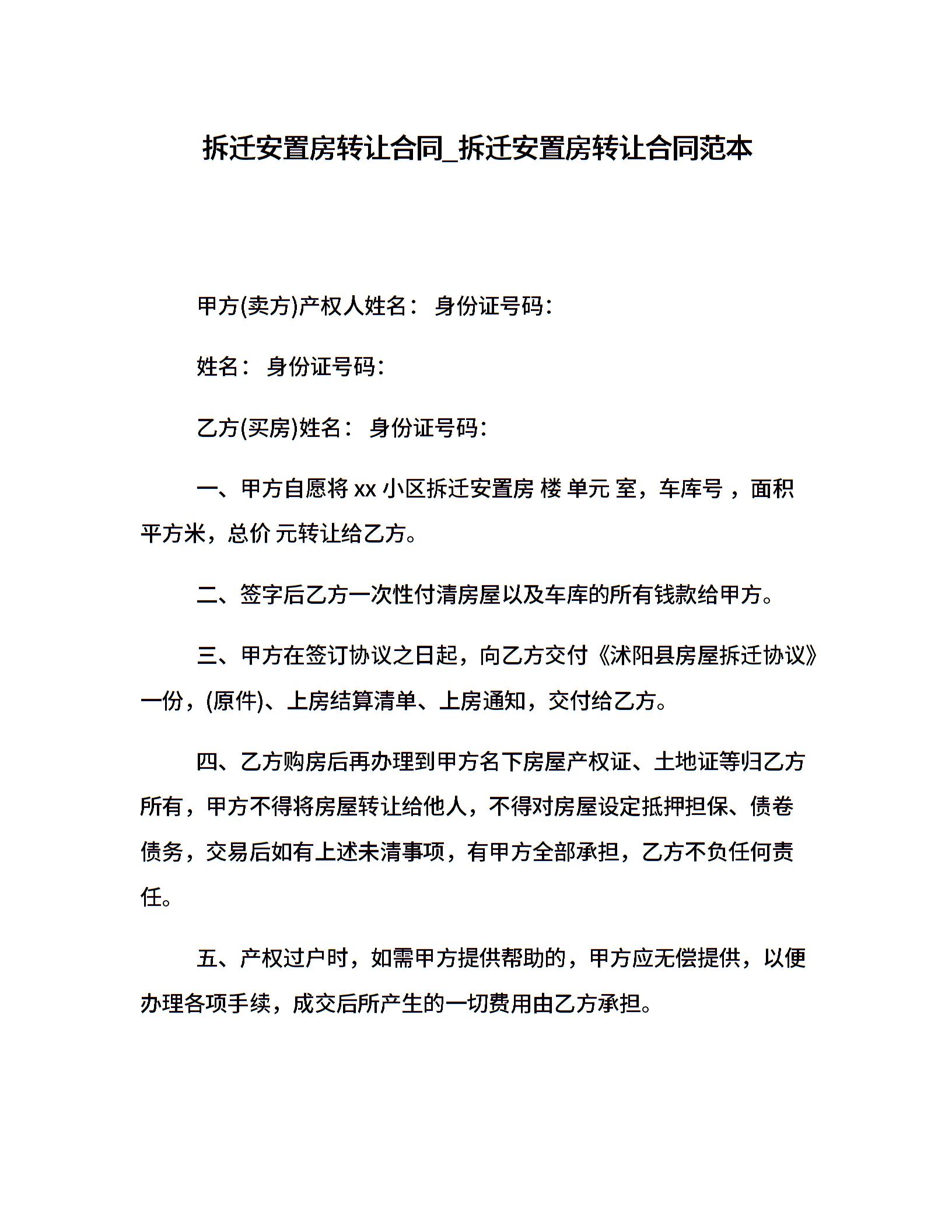 拆迁安置房转让合同_拆迁安置房转让合同范本