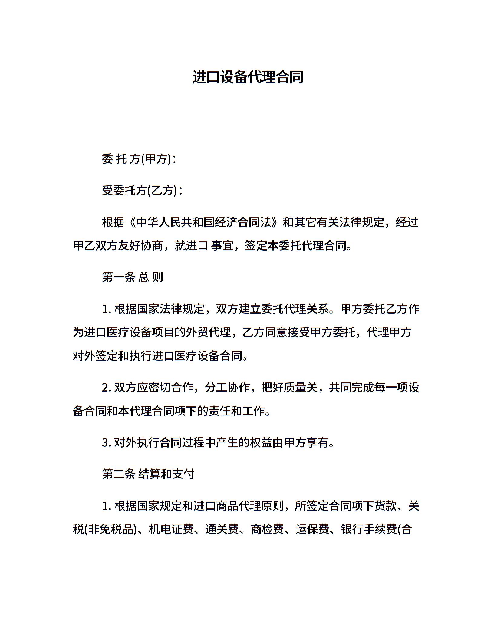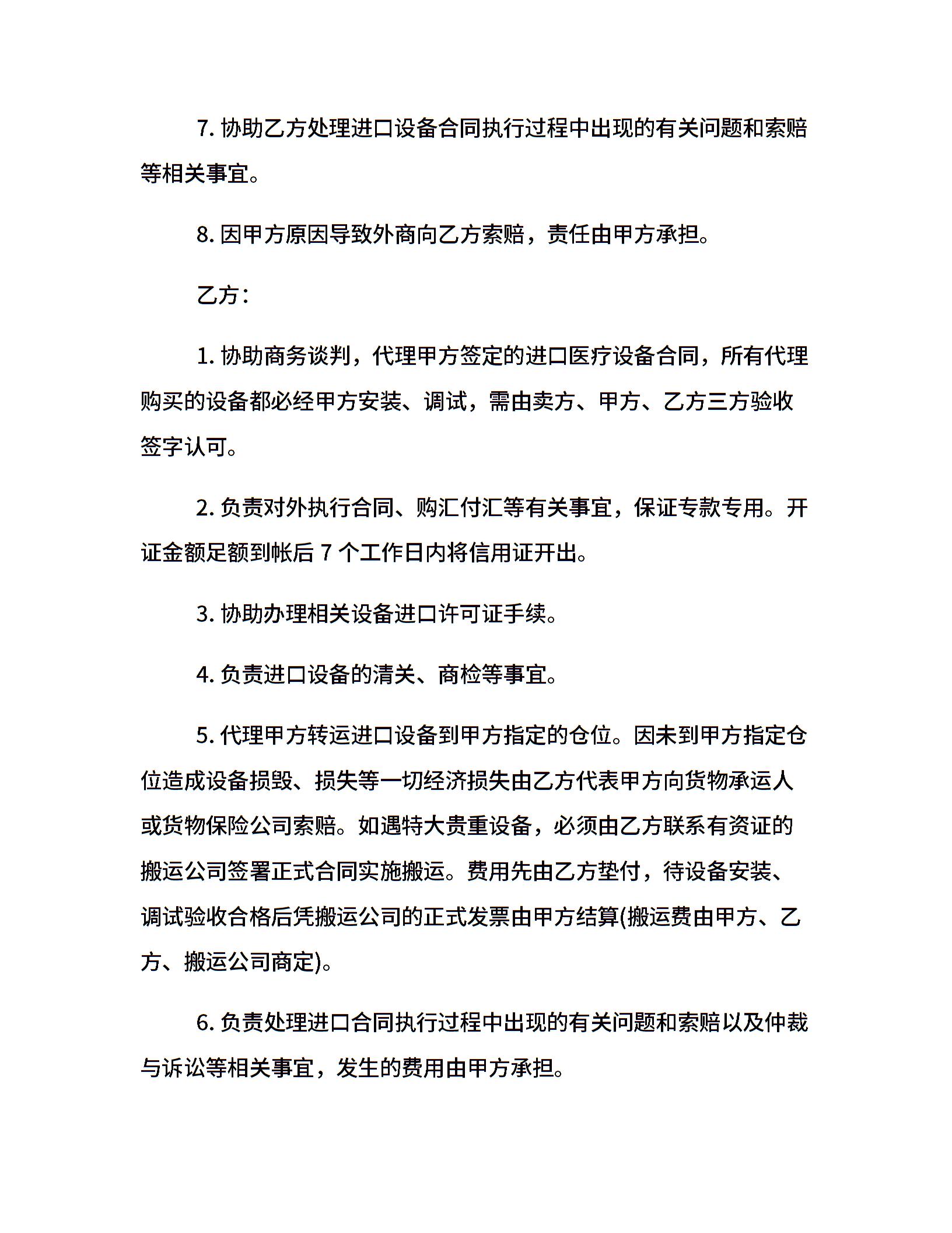进口设备代理合同
