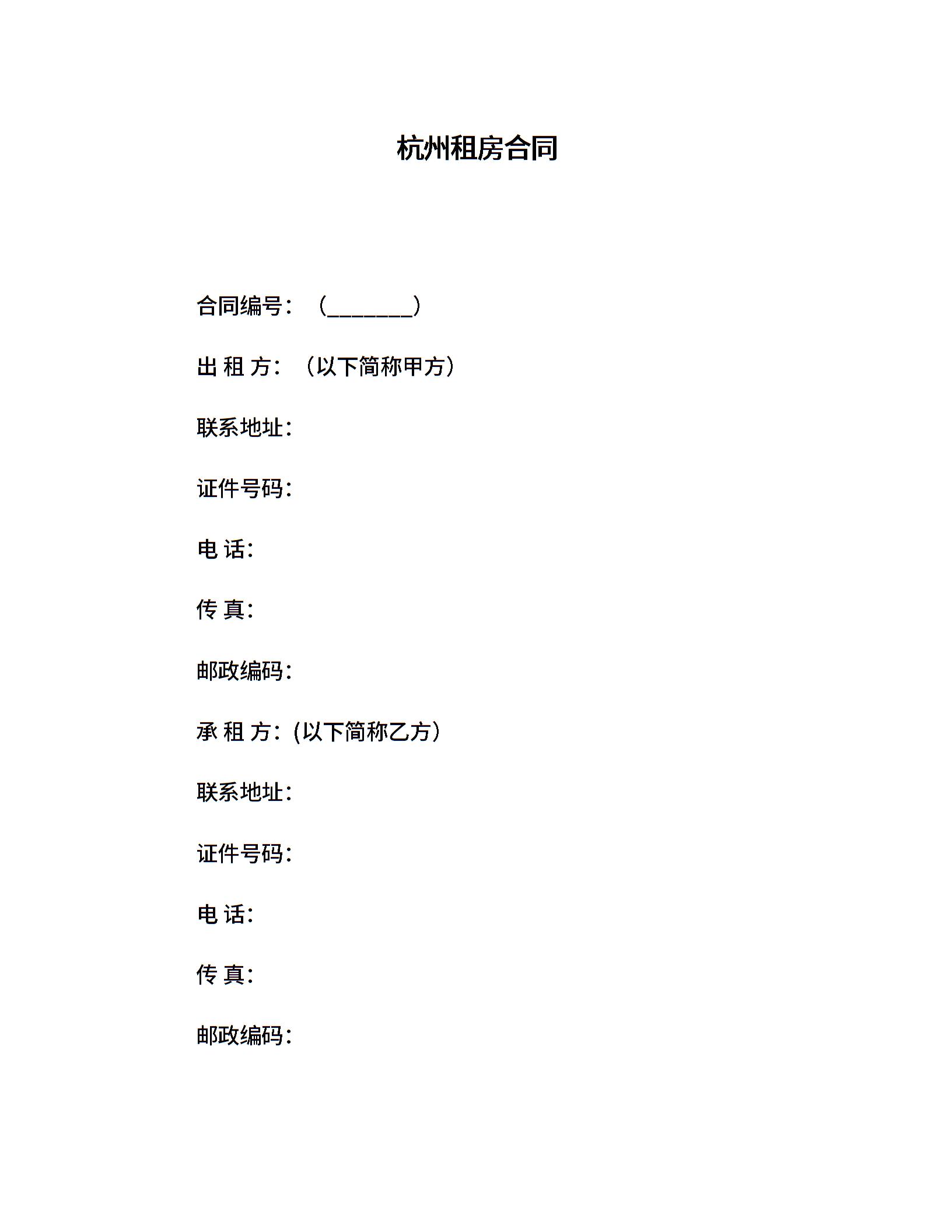 杭州租房合同