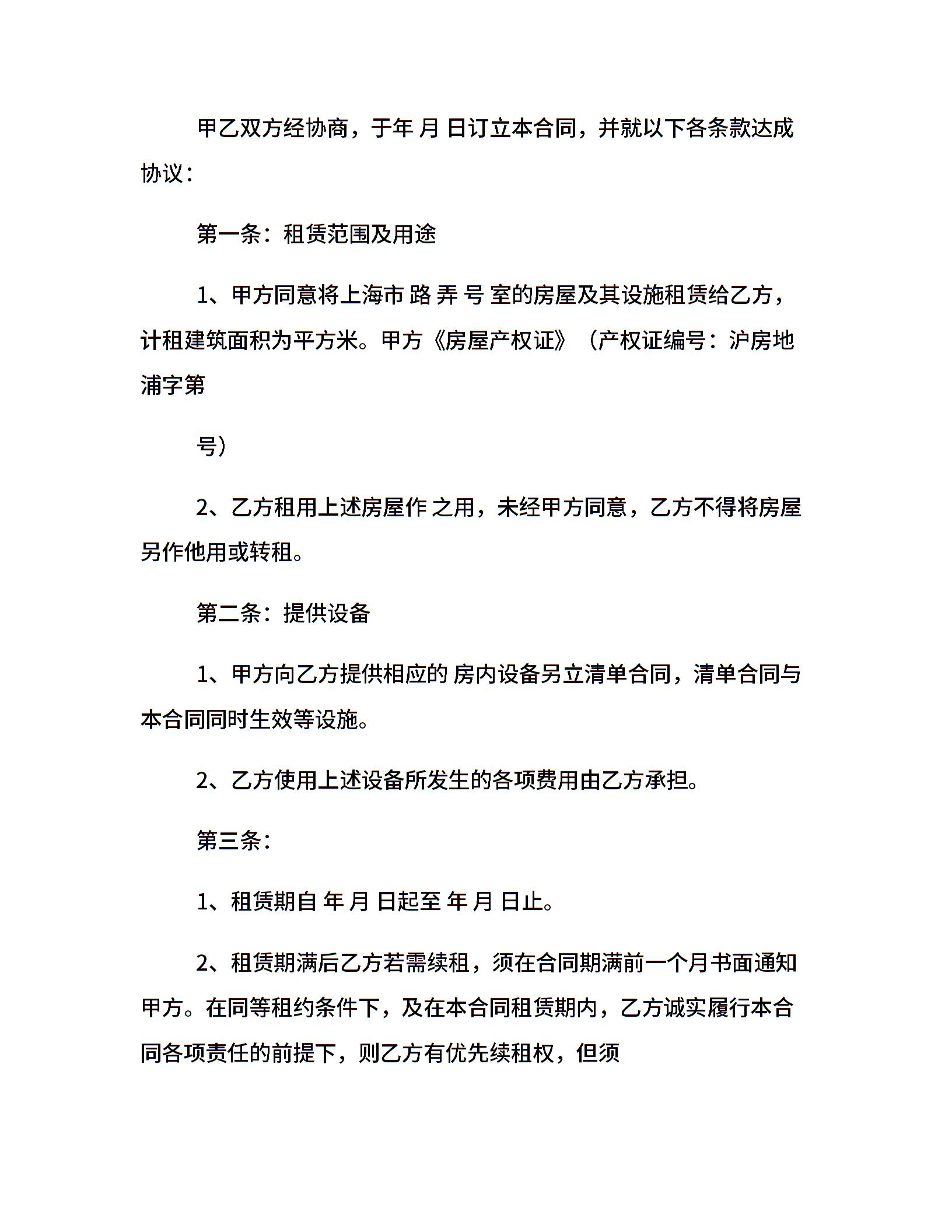当前位置:量子办公 > 合同模板 > 租赁合同 >