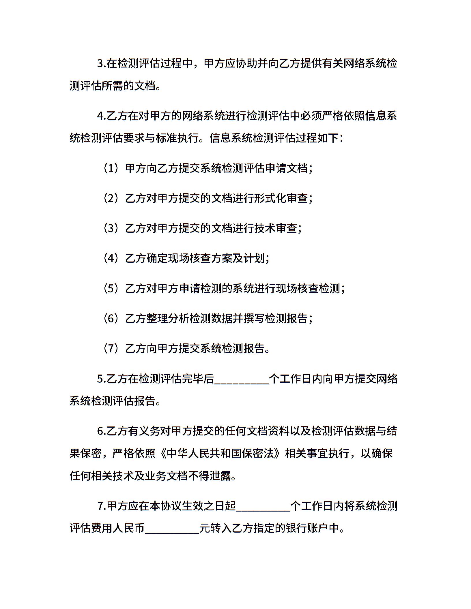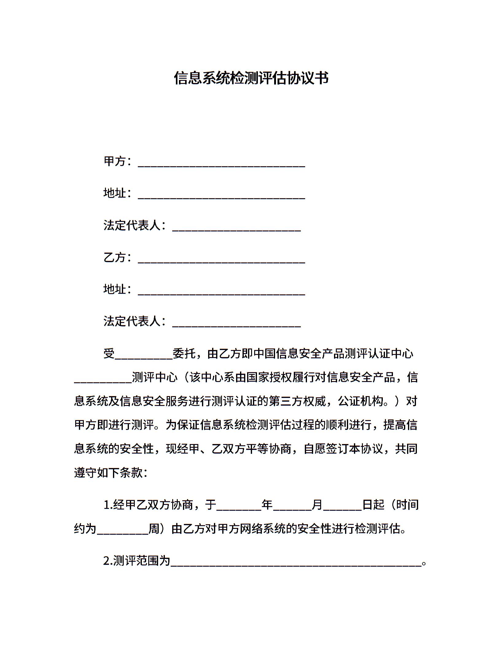 信息系统检测评估协议书