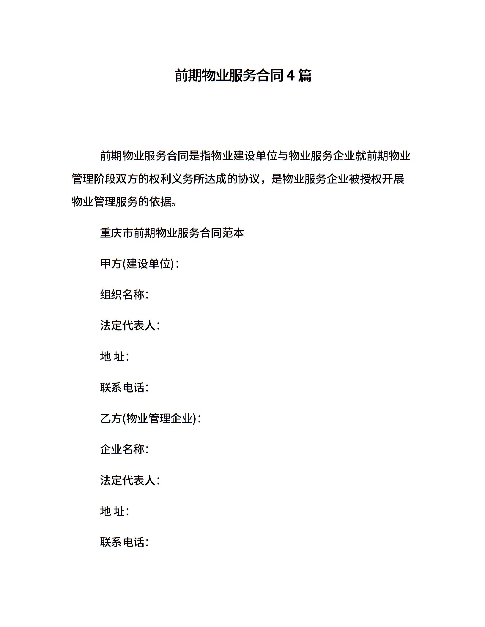前期物业服务合同4篇