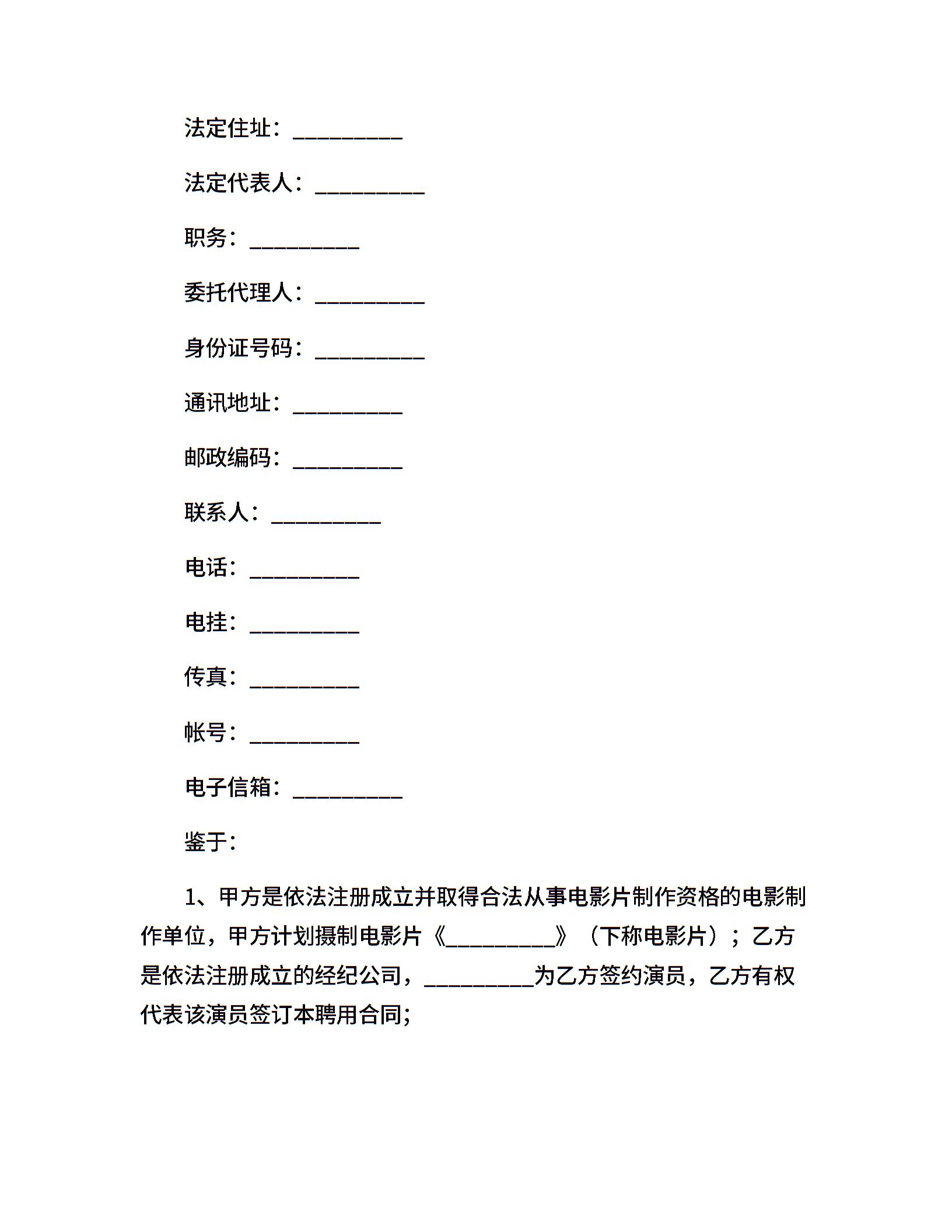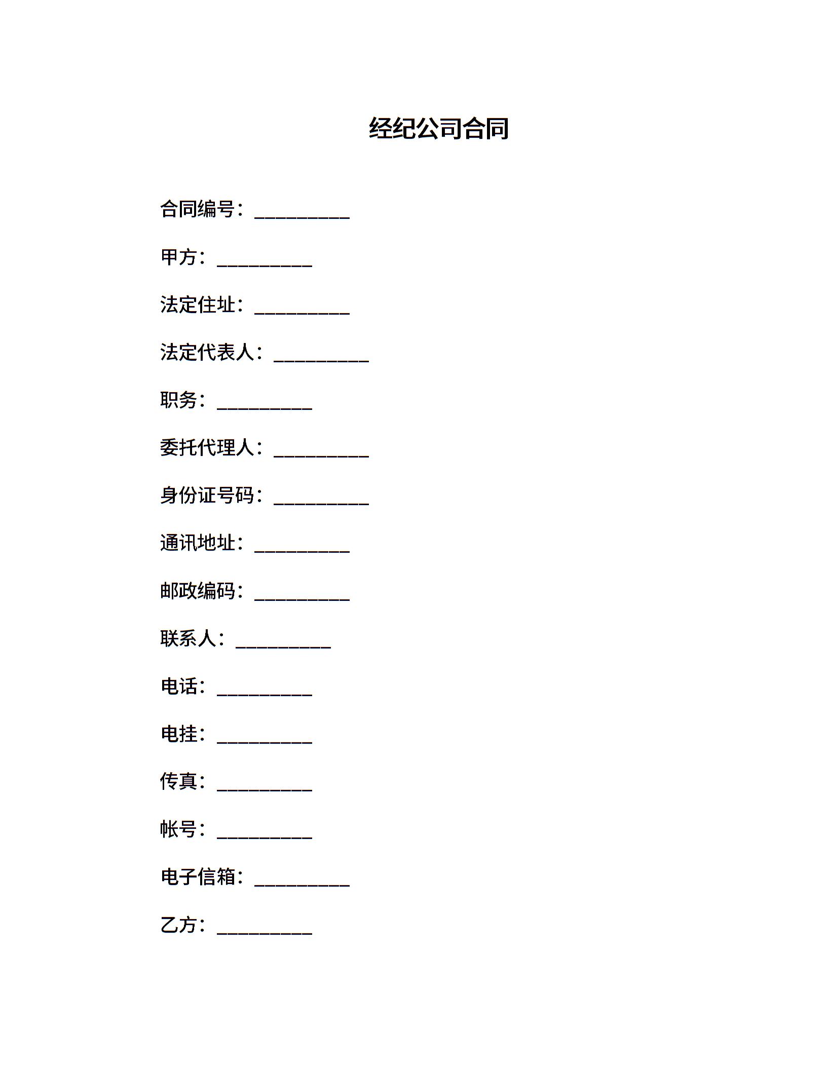 经纪公司合同