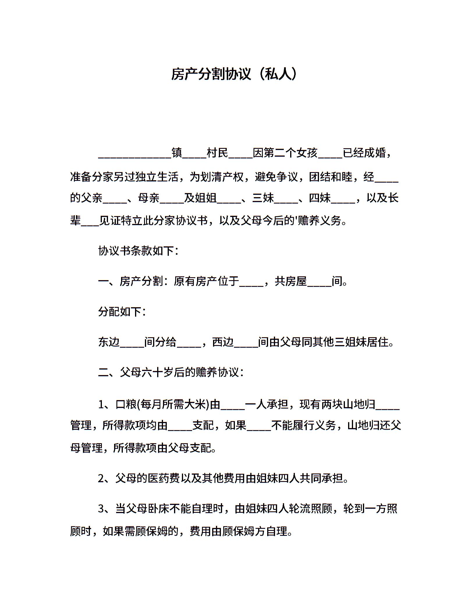 房产分割协议(私人)