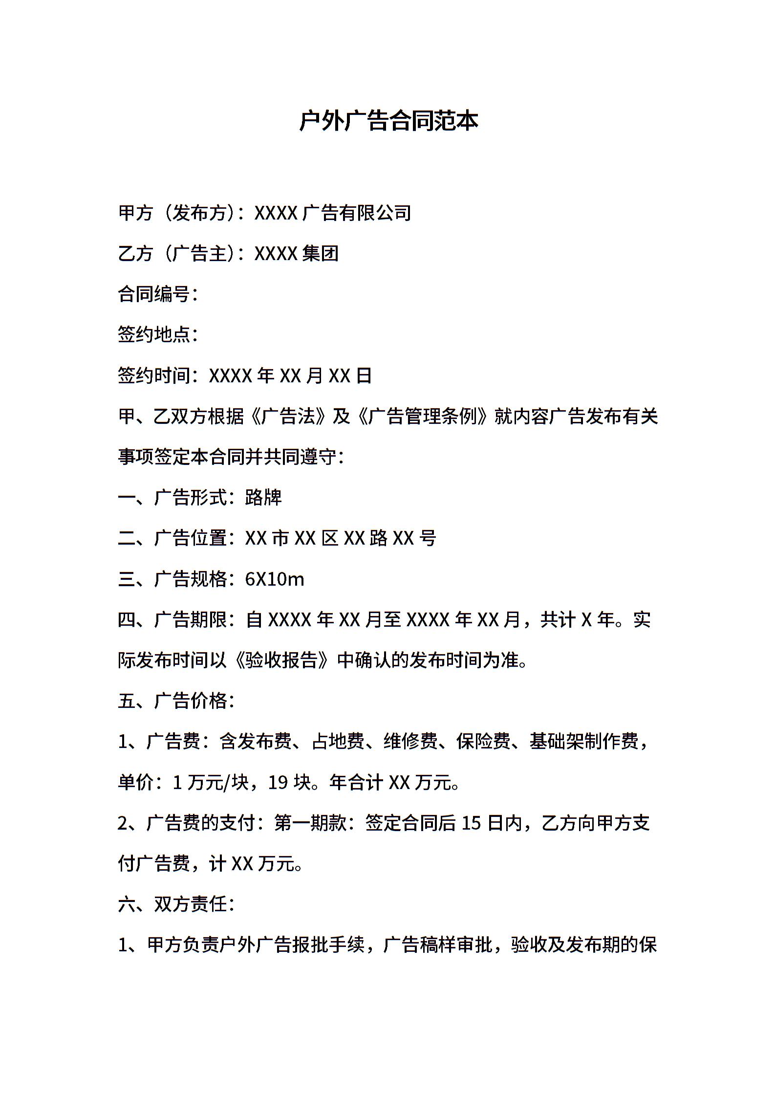 户外广告合同范本