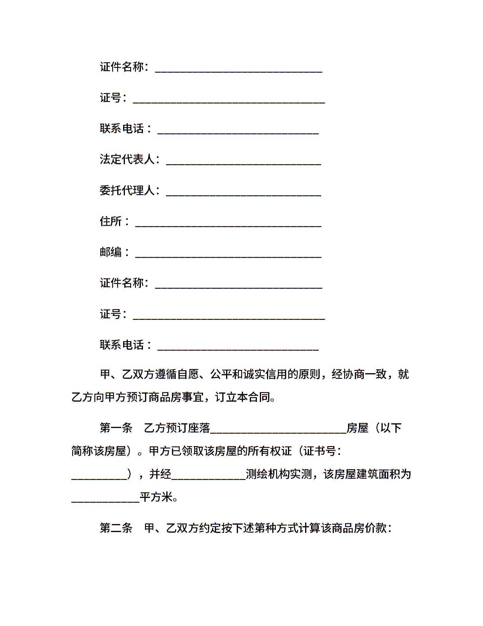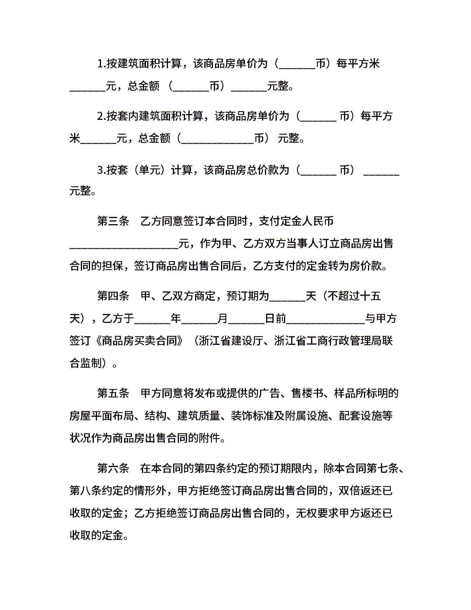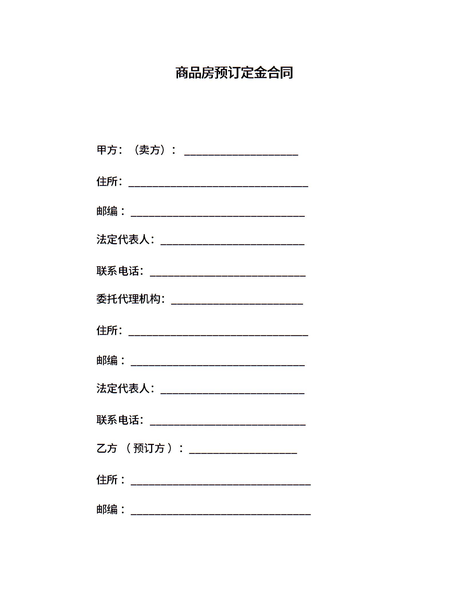 商品房预订定金合同