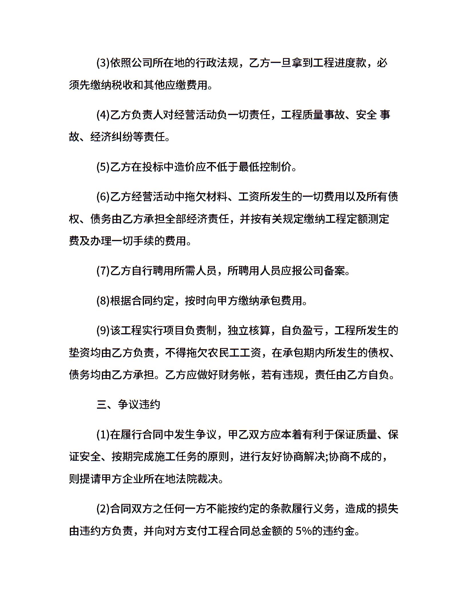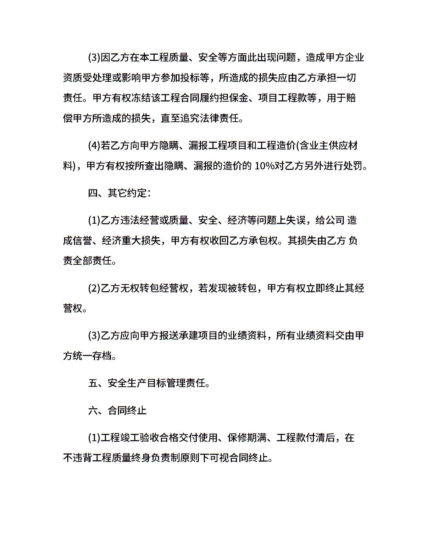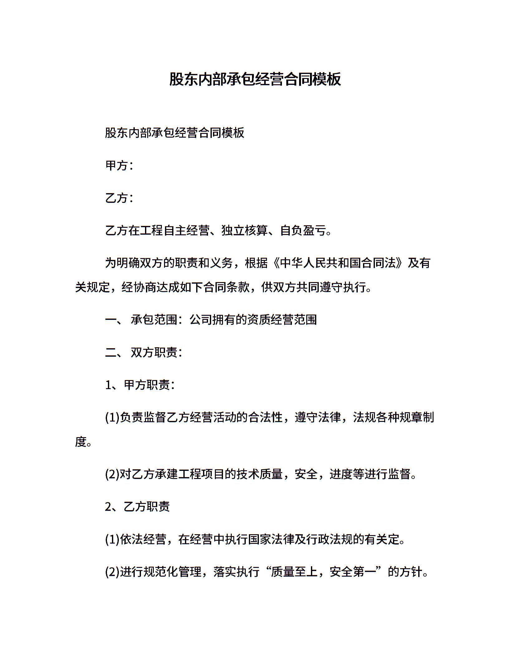 股东内部承包经营合同模板