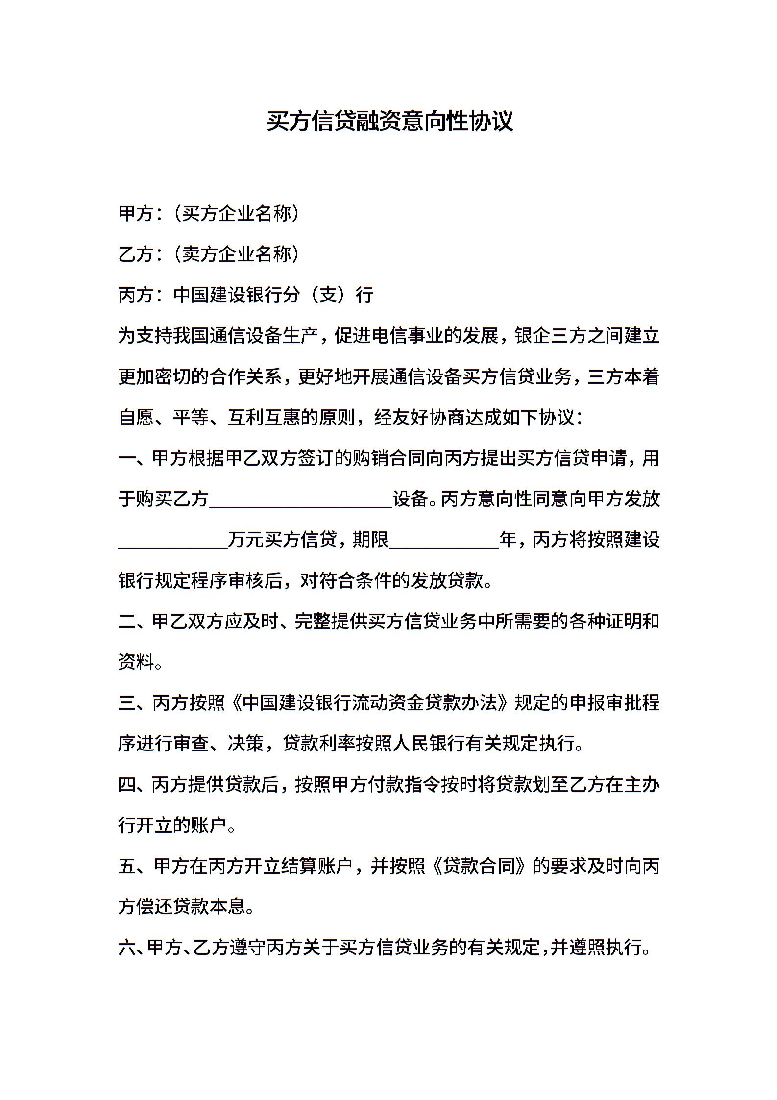 买方信贷融资意向性协议