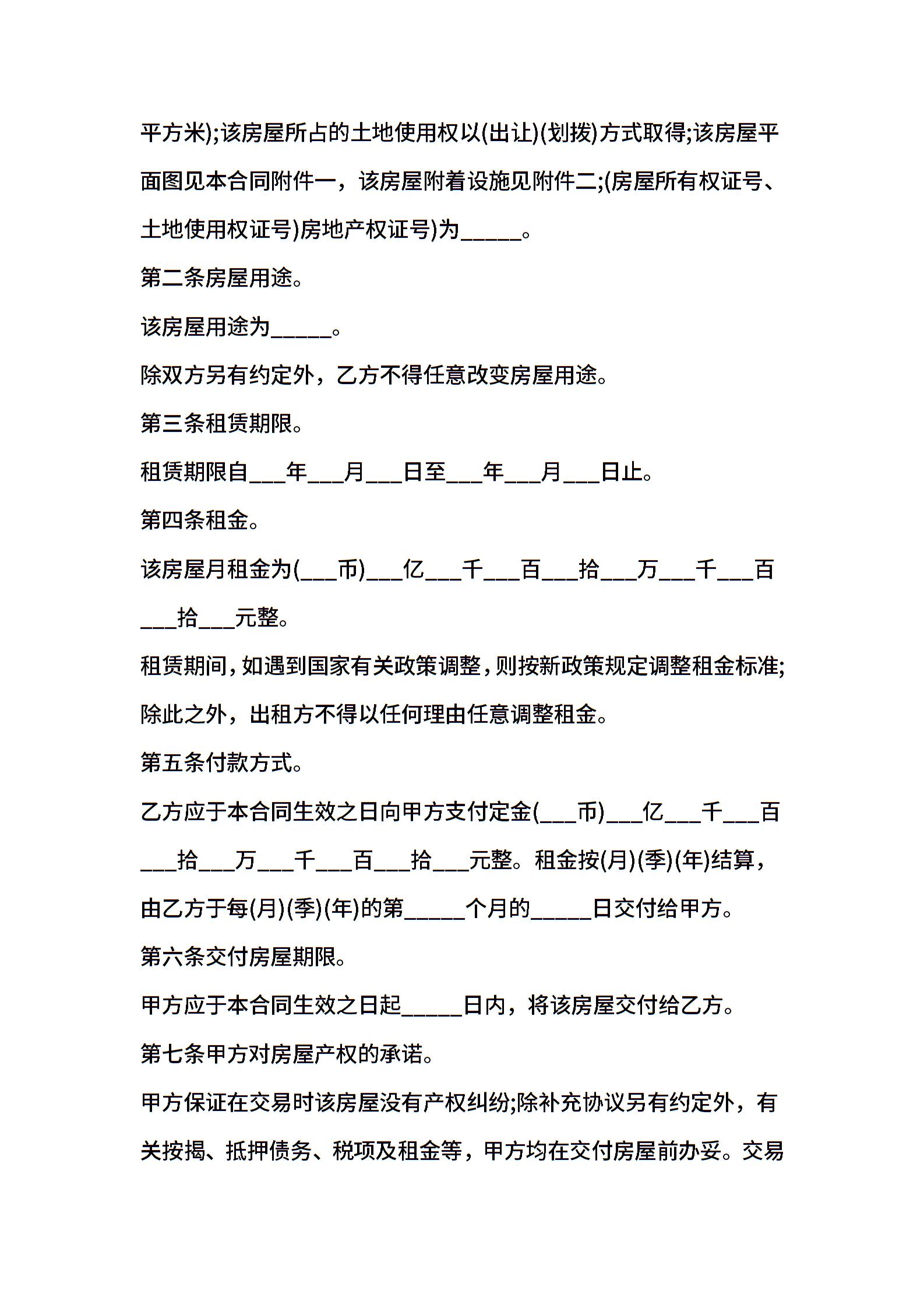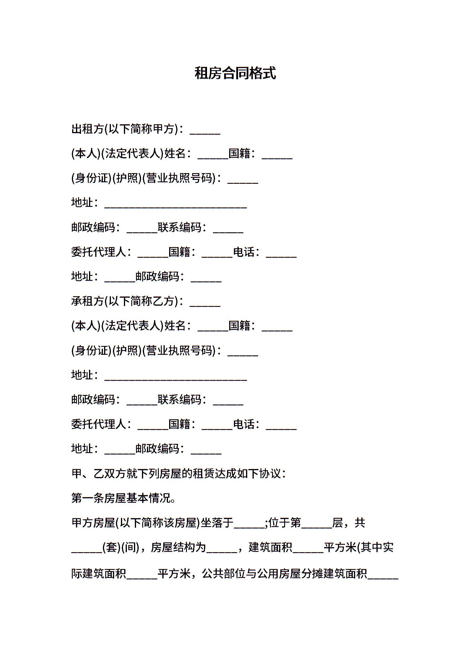 租房合同格式