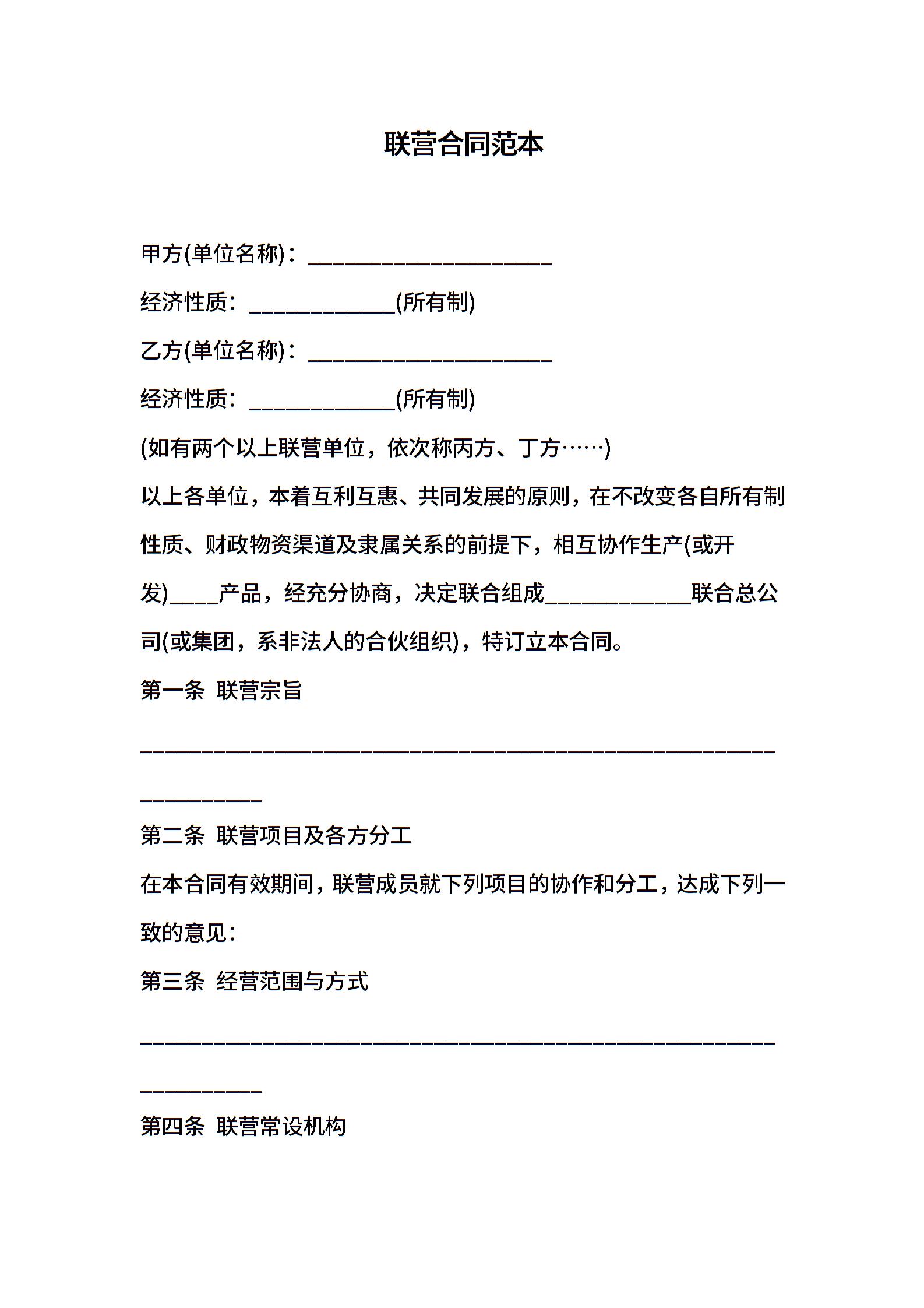 联营合同范本 (2)