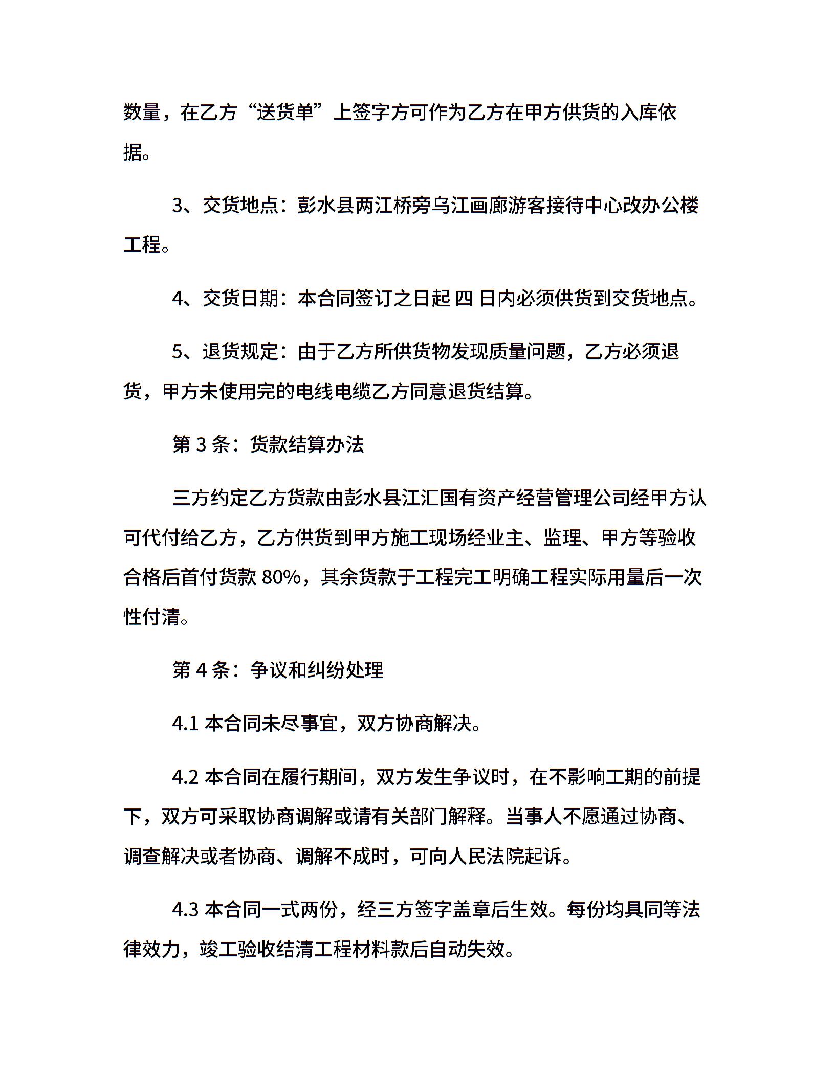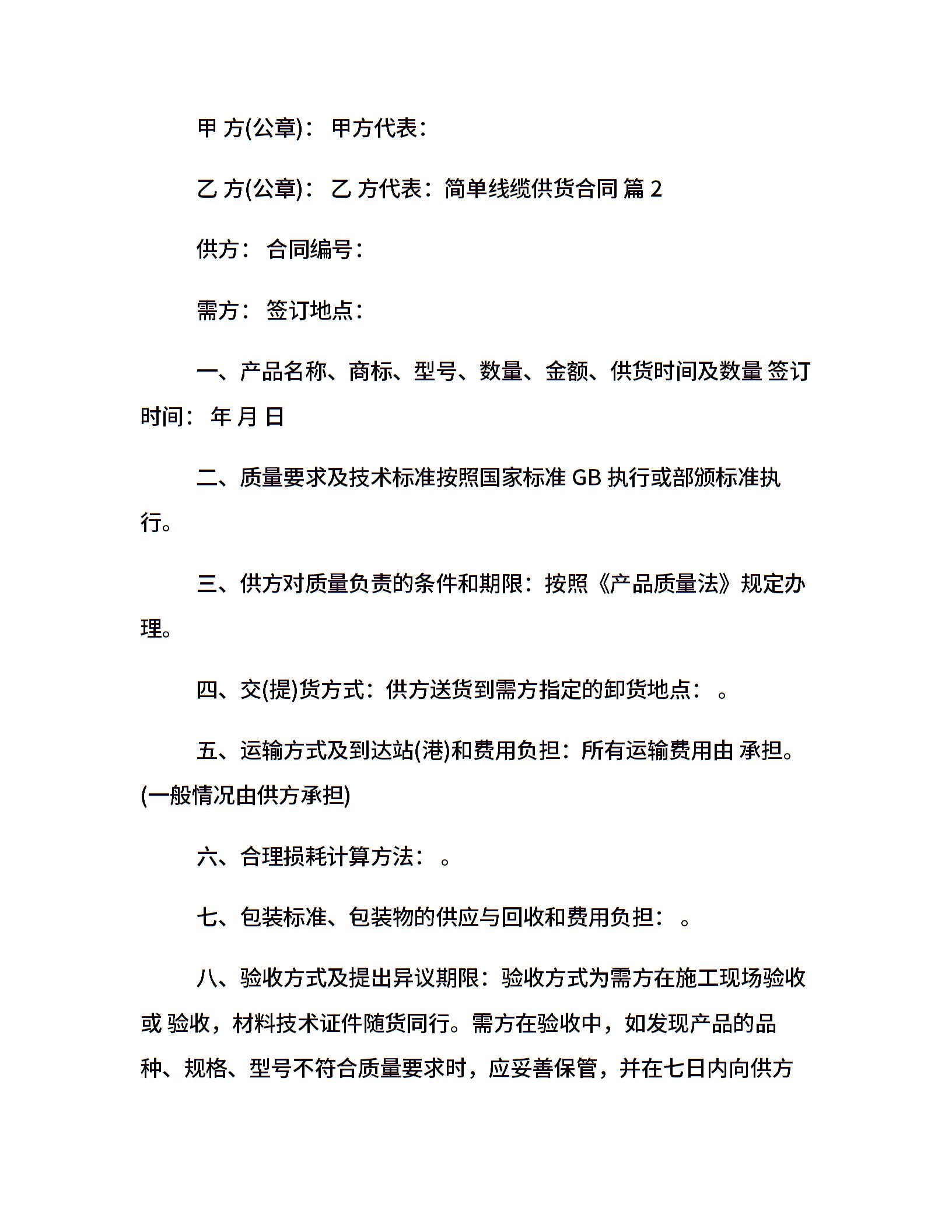 简单线缆供货合同