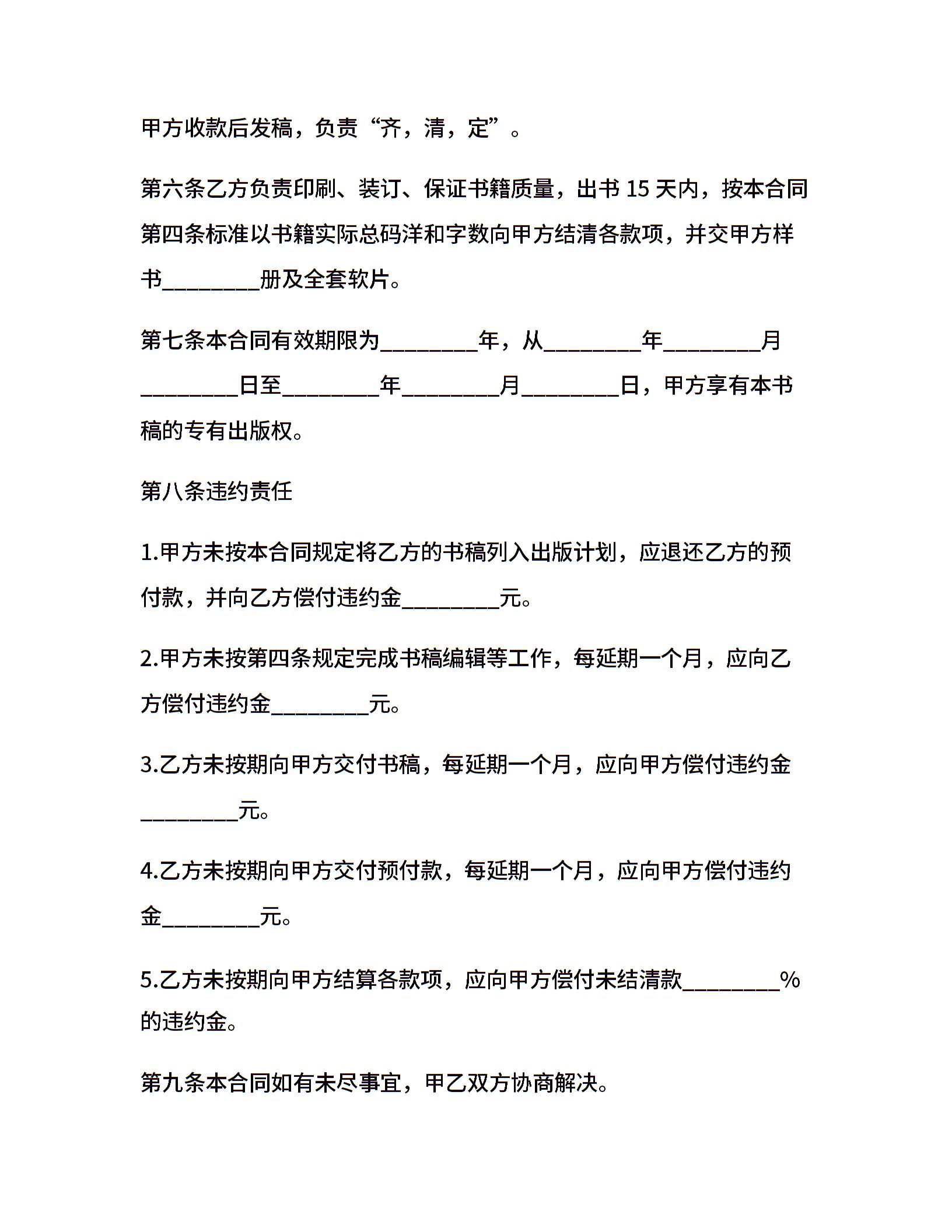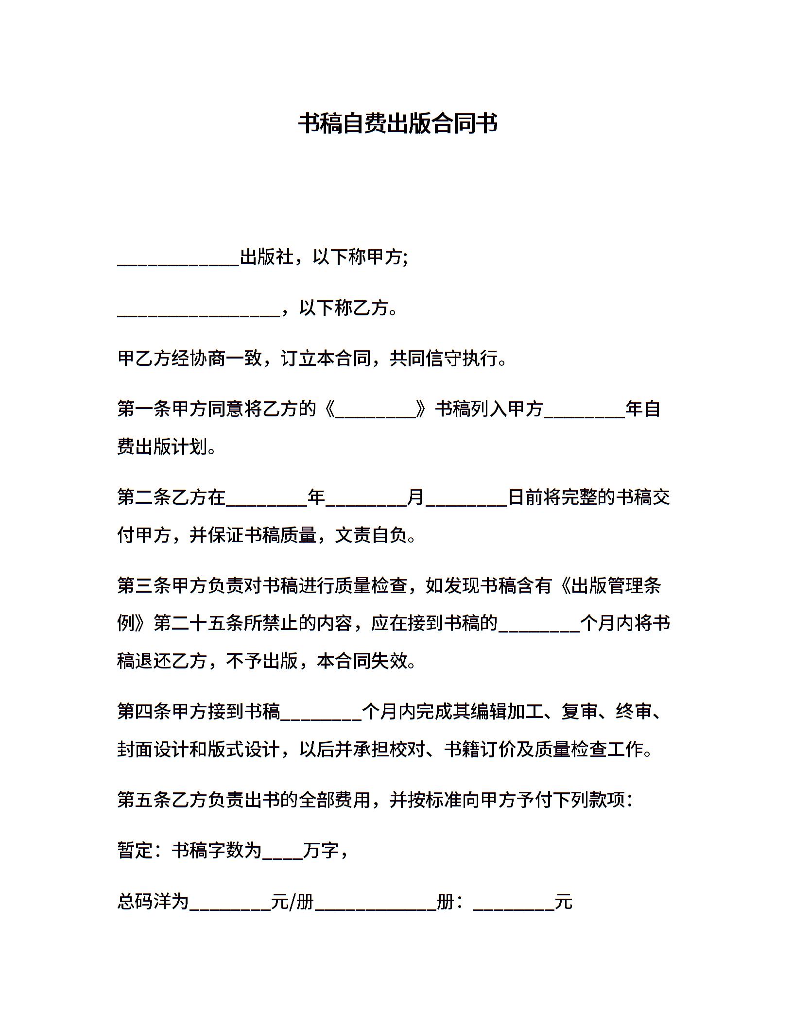 书稿自费出版合同书