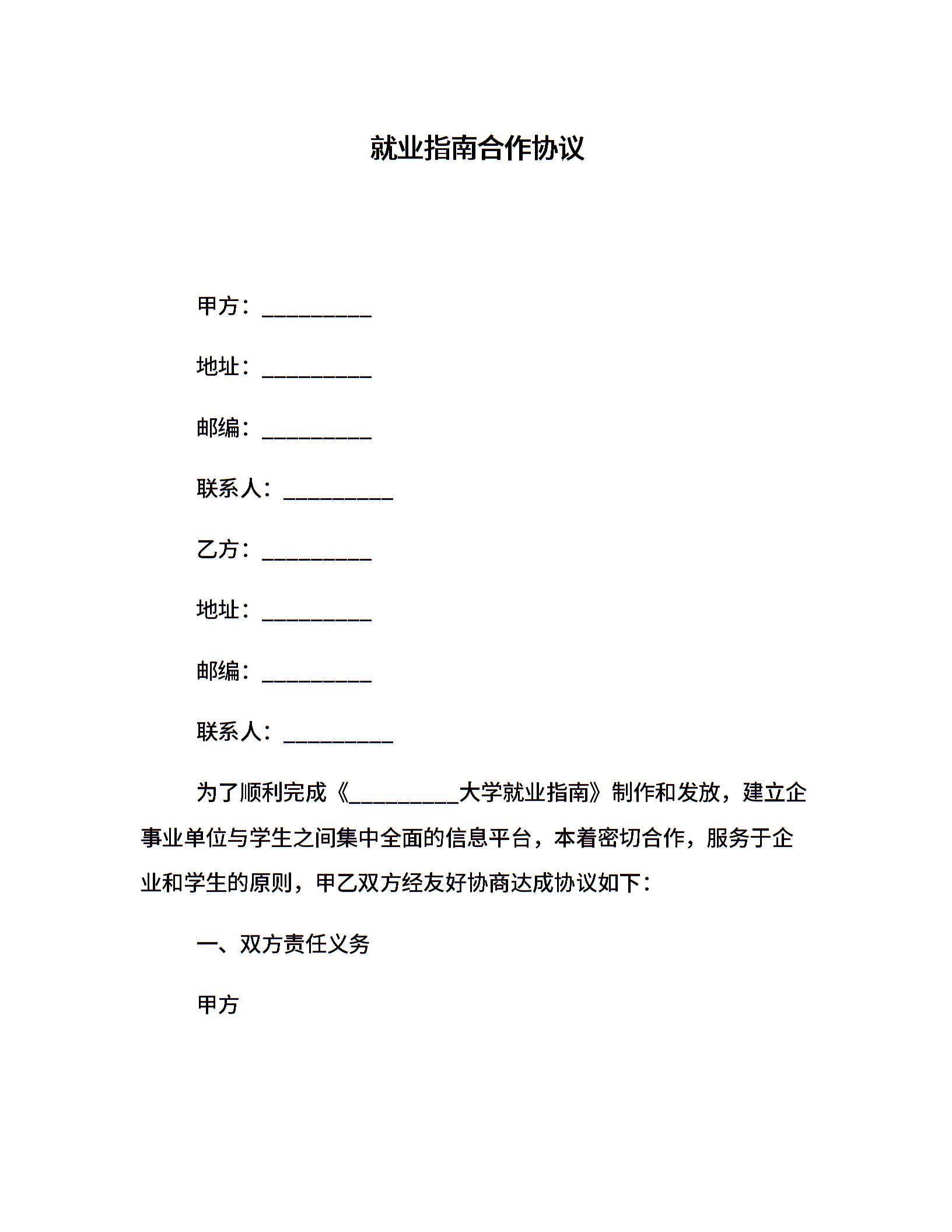 就业指南合作协议