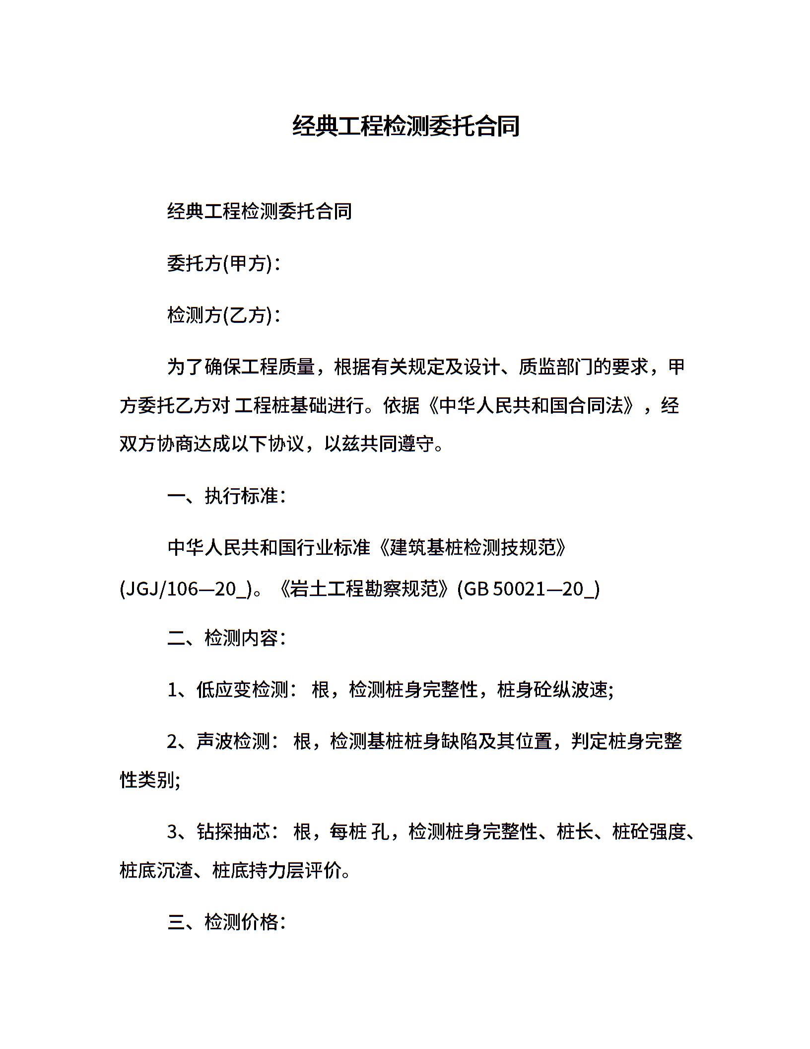 经典工程检测委托合同