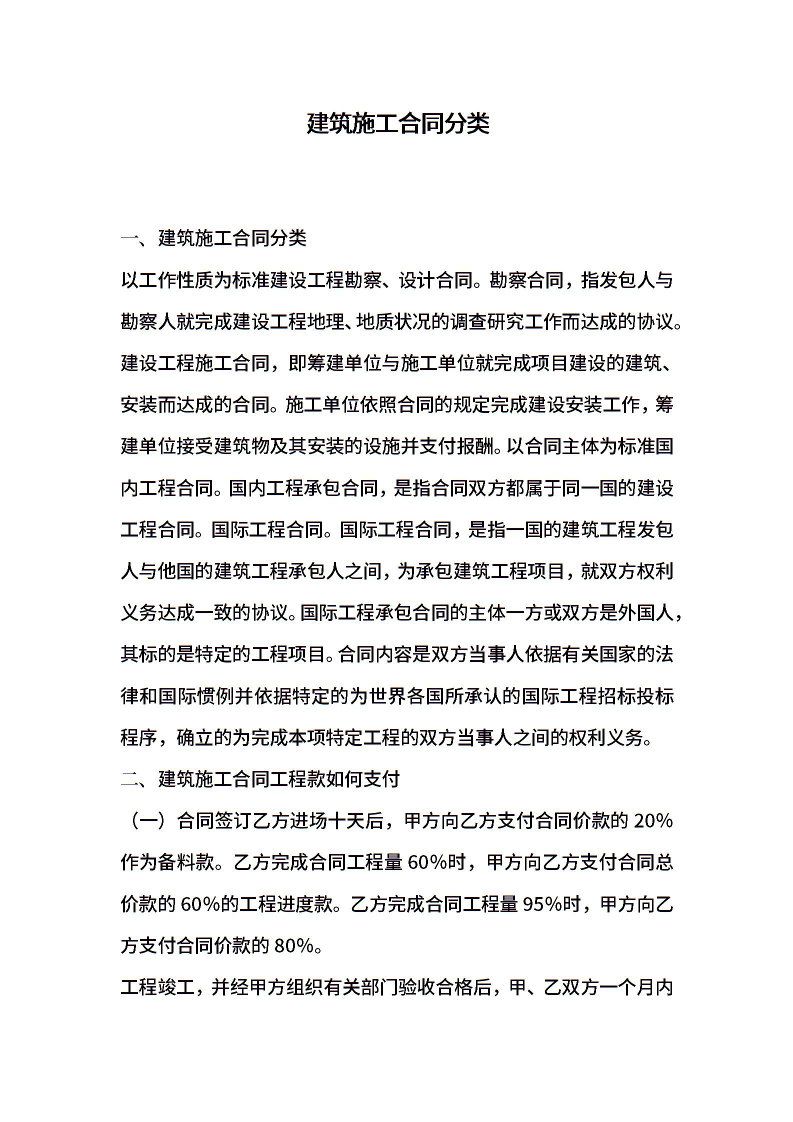 建筑施工合同分类