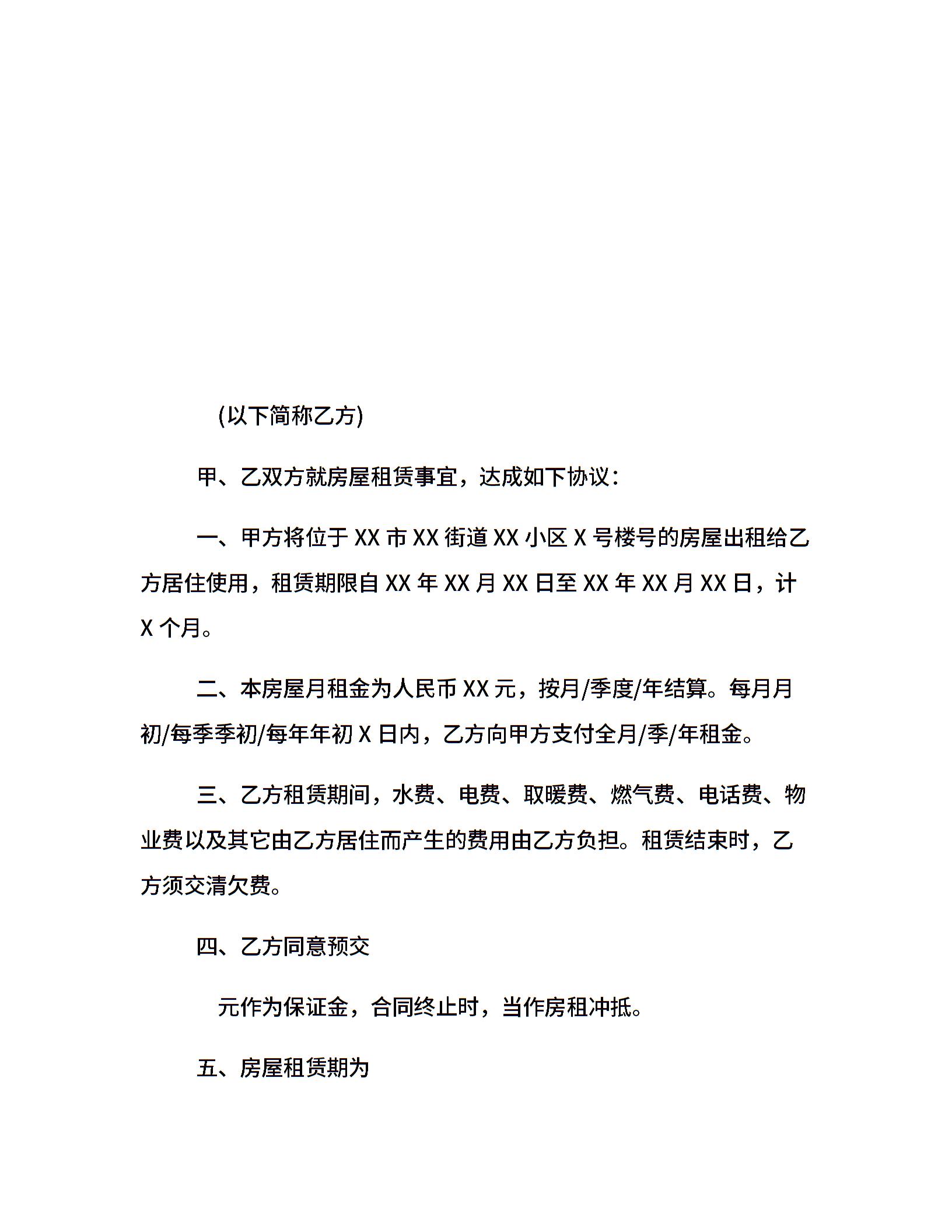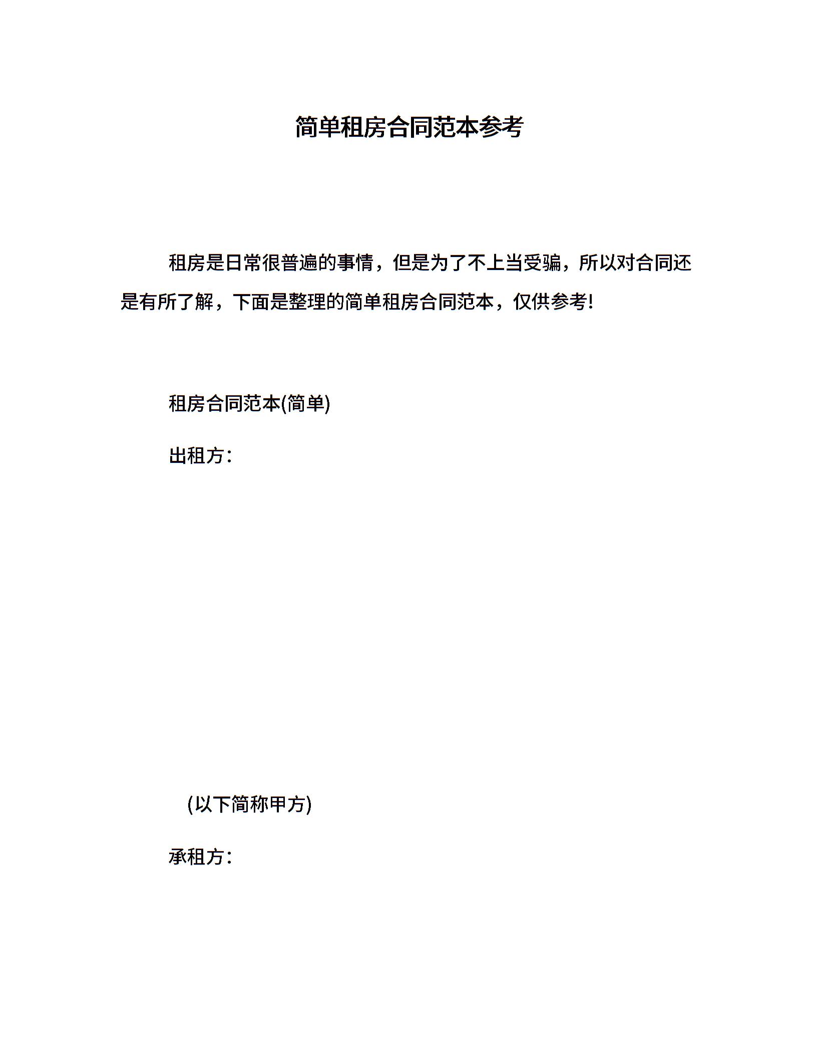简单租房合同范本参考