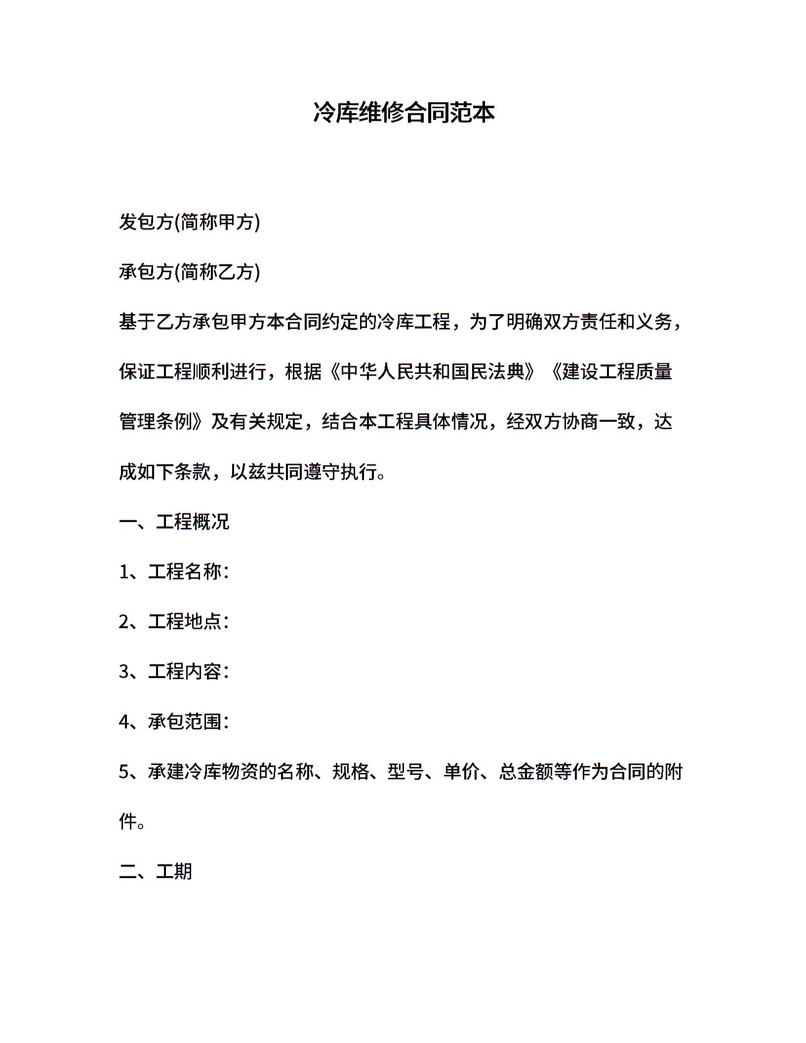 冷库维修合同范本