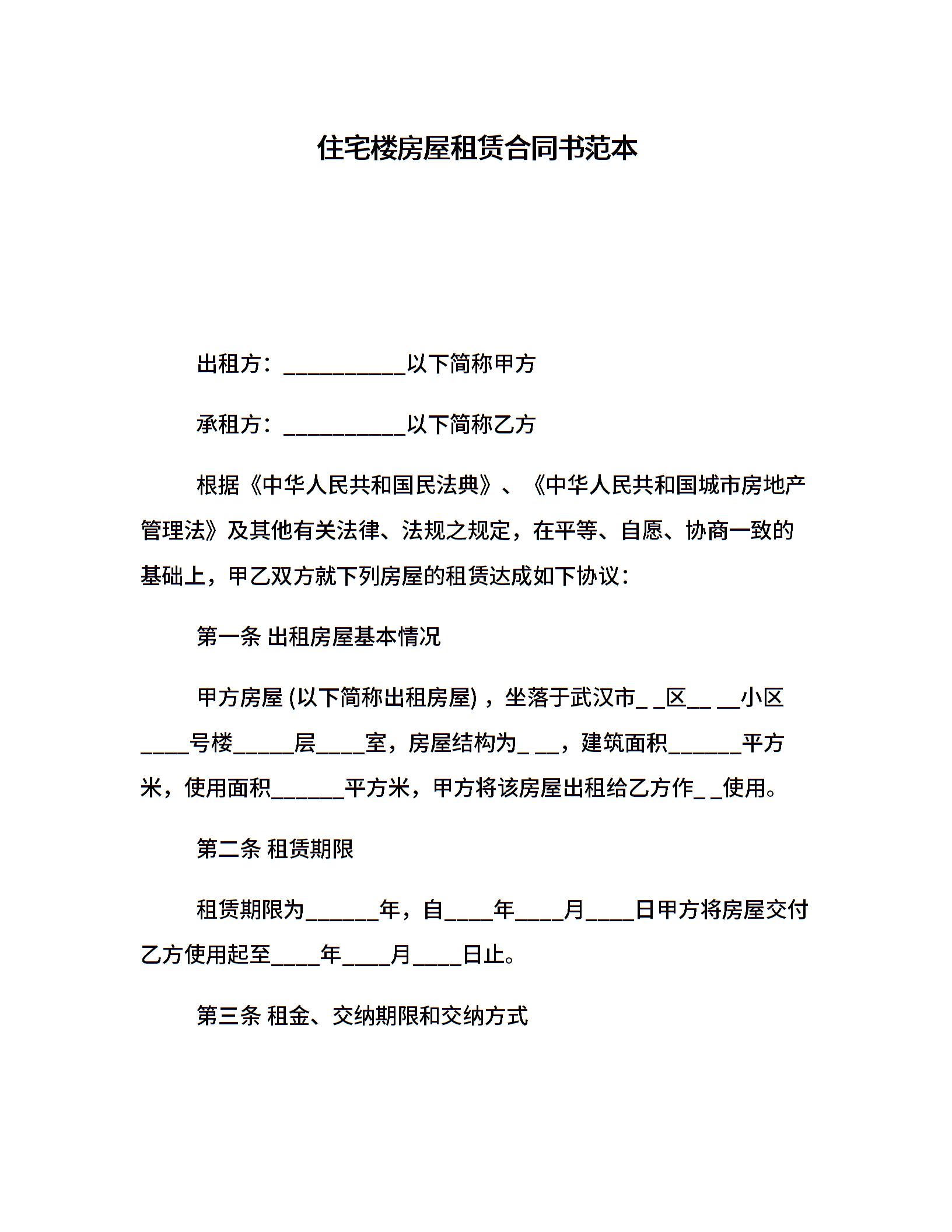 住宅楼房屋租赁合同书范本