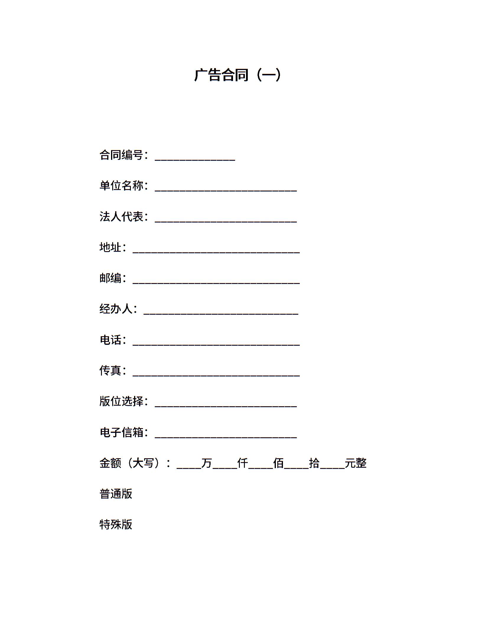广告合同(一)