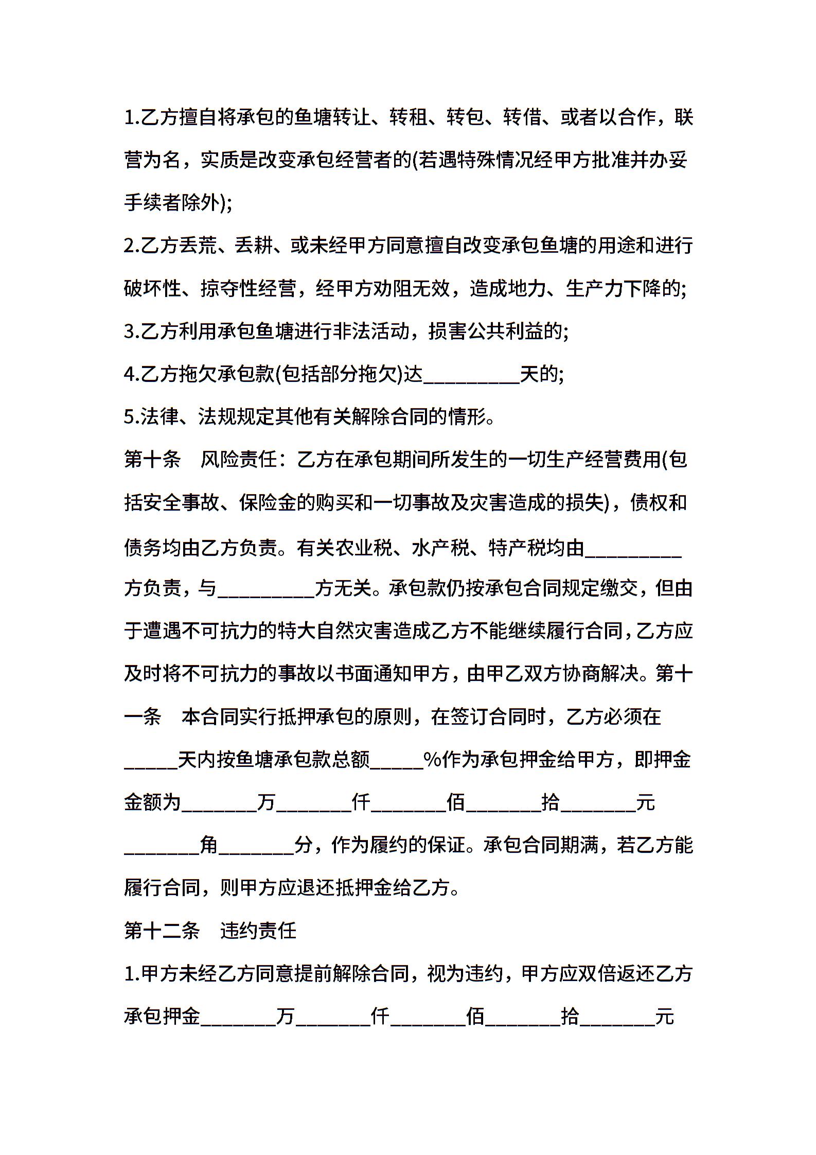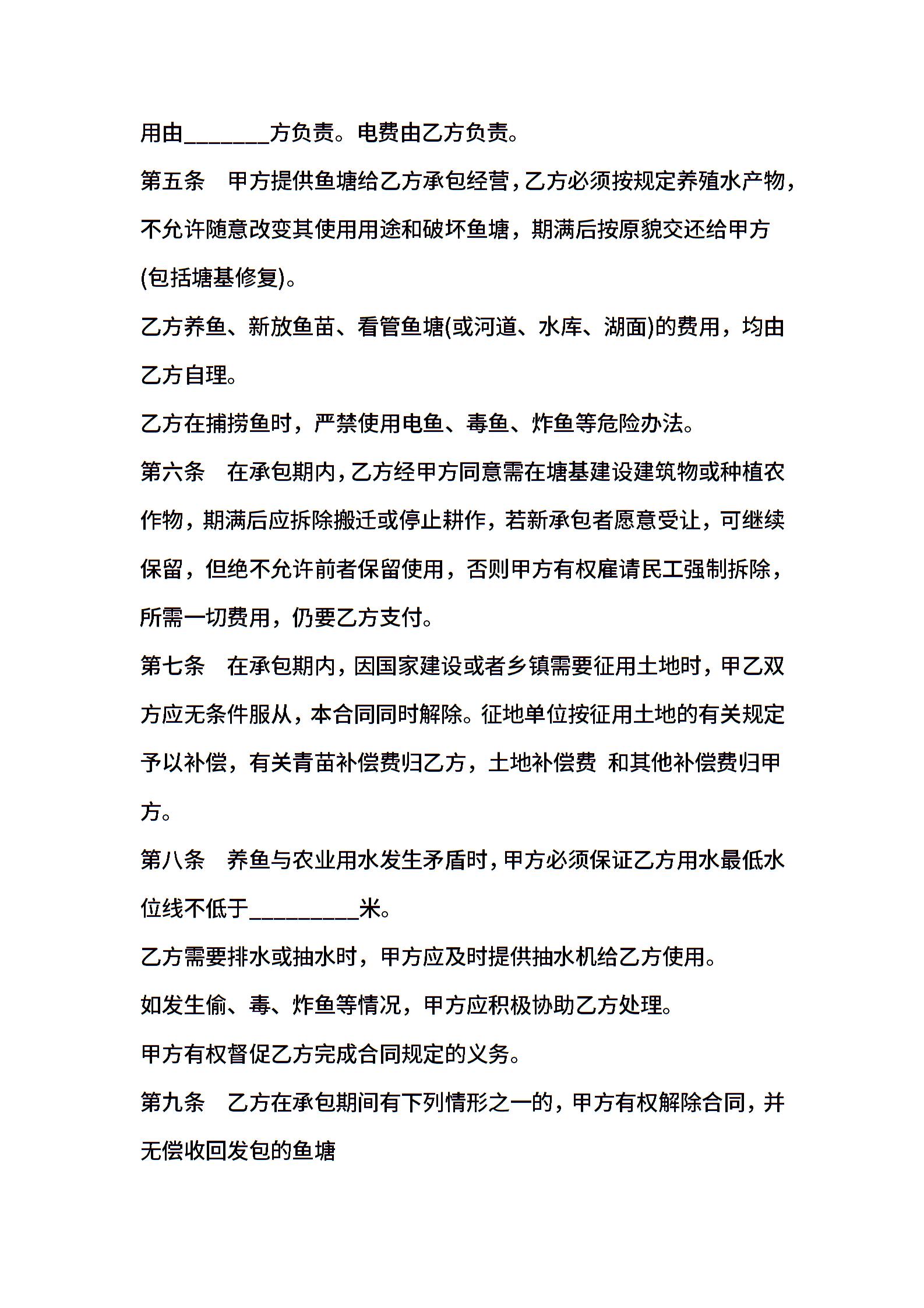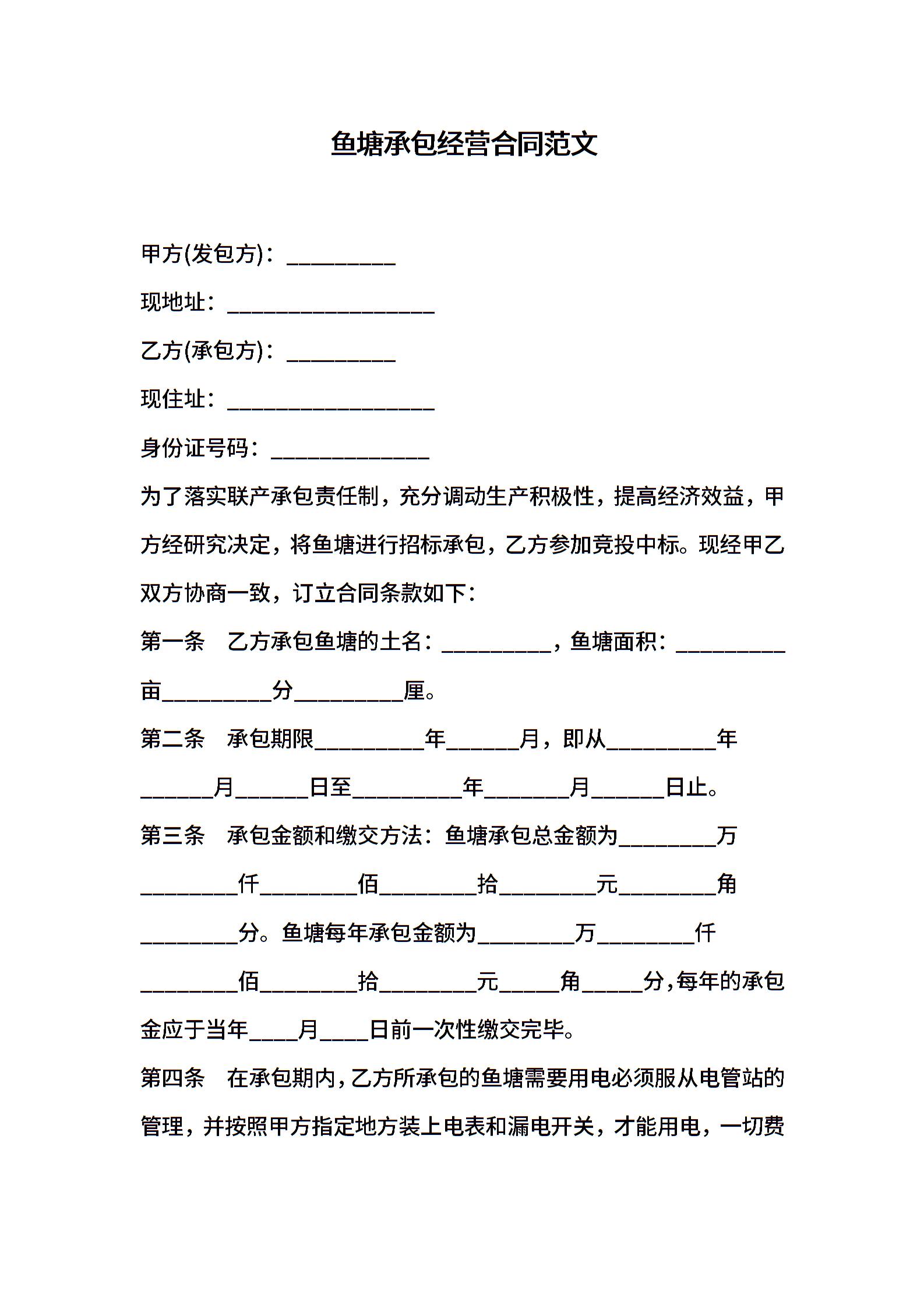 鱼塘承包经营合同范文