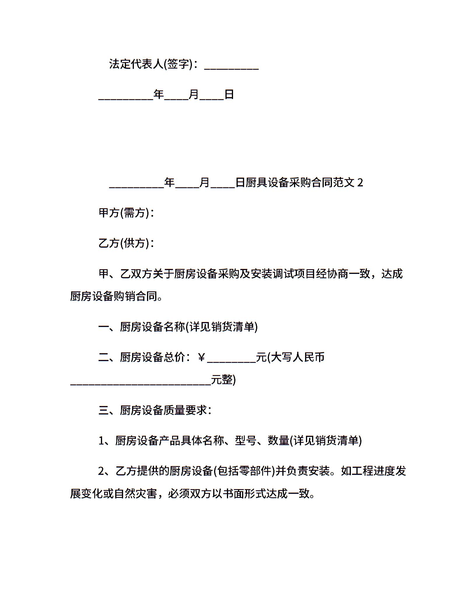 厨具设备采购合同