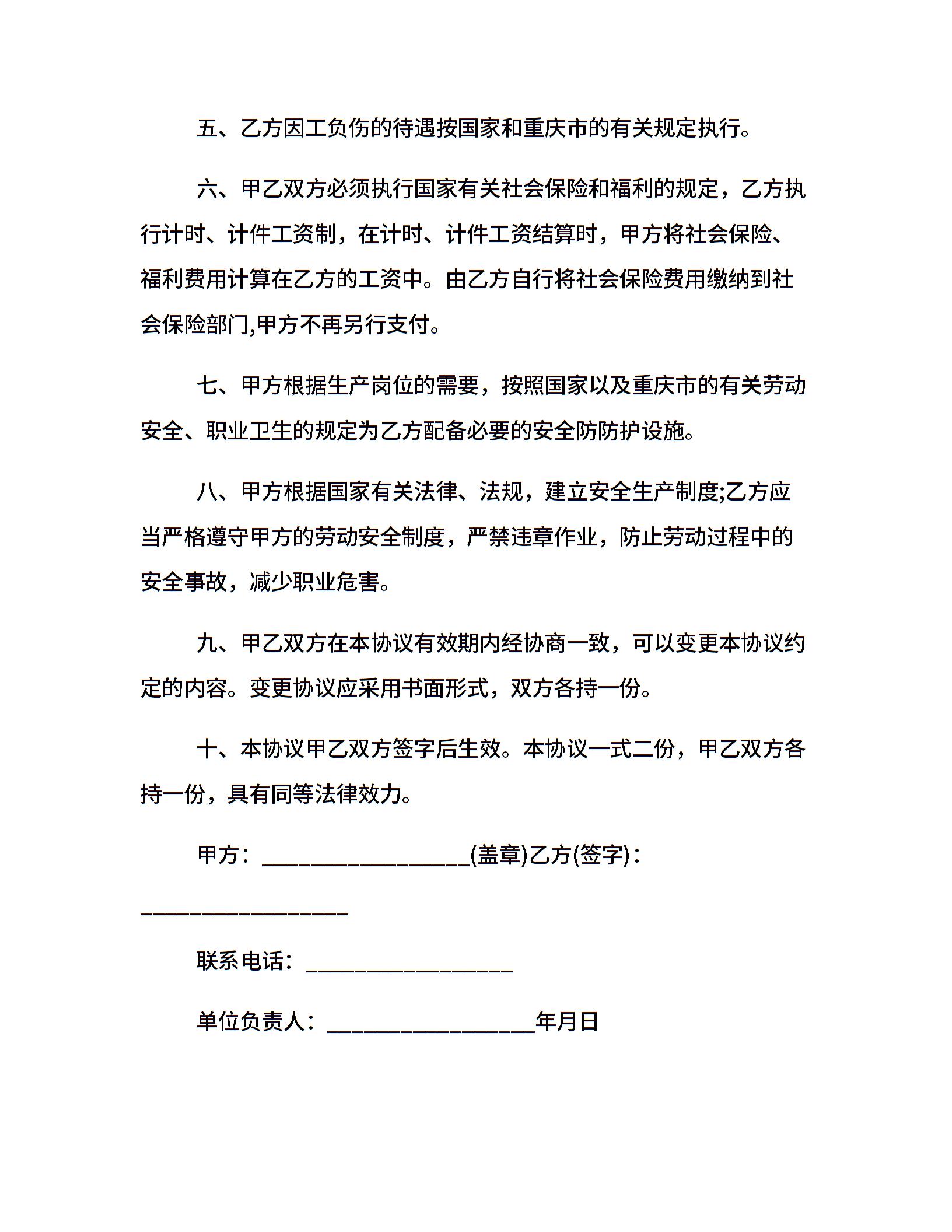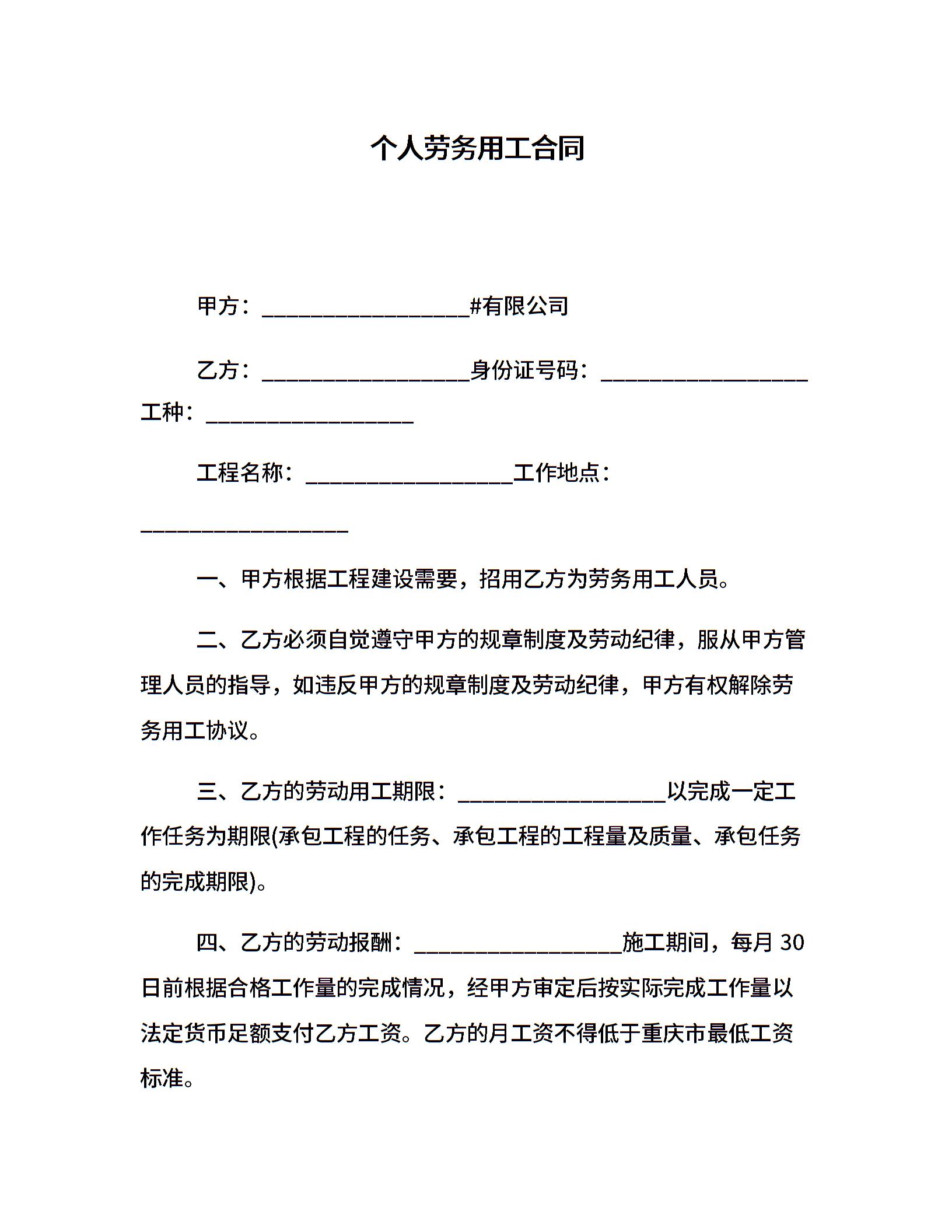 个人劳务用工合同