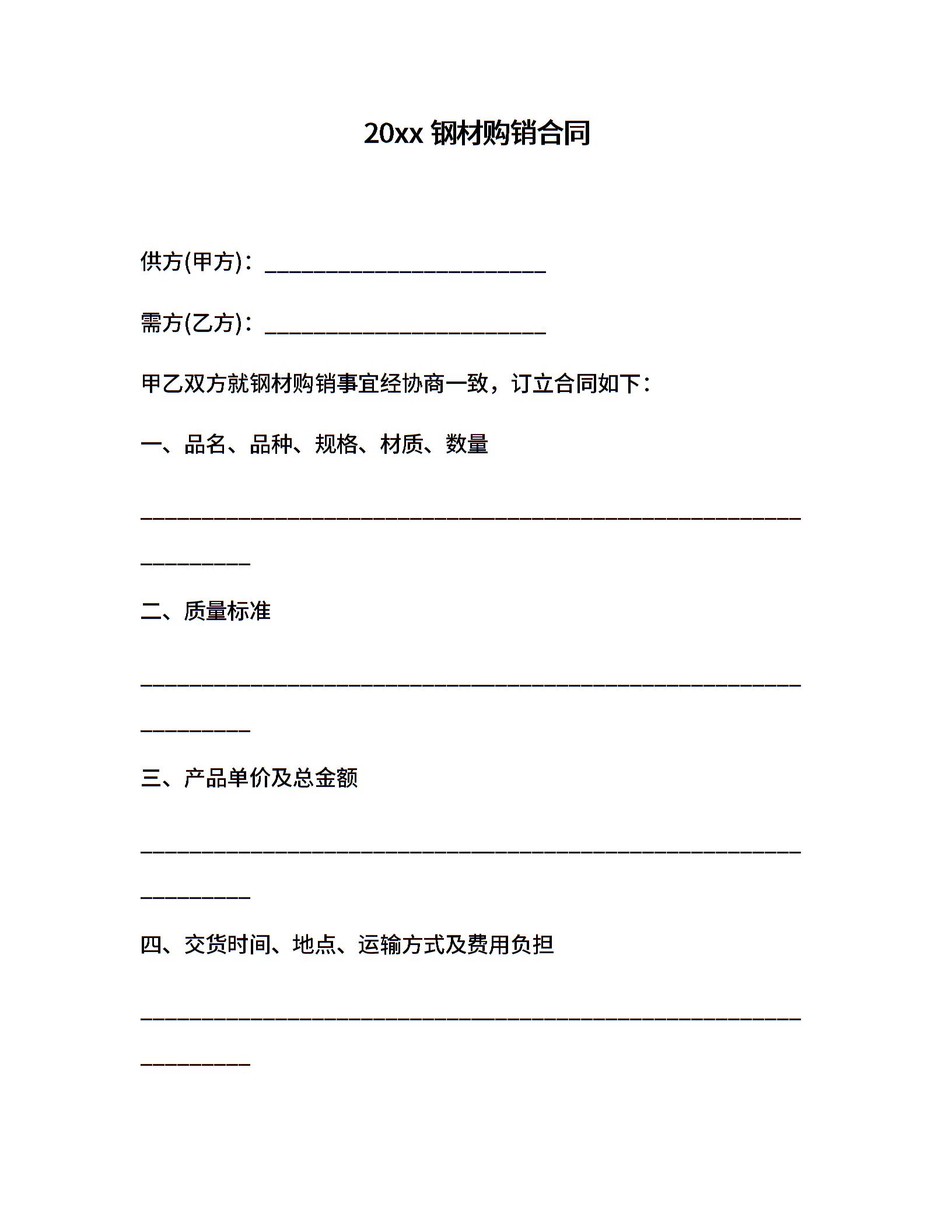 20xx钢材购销合同