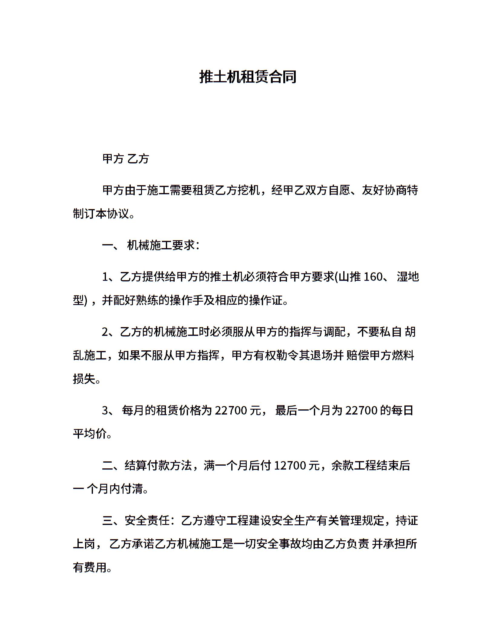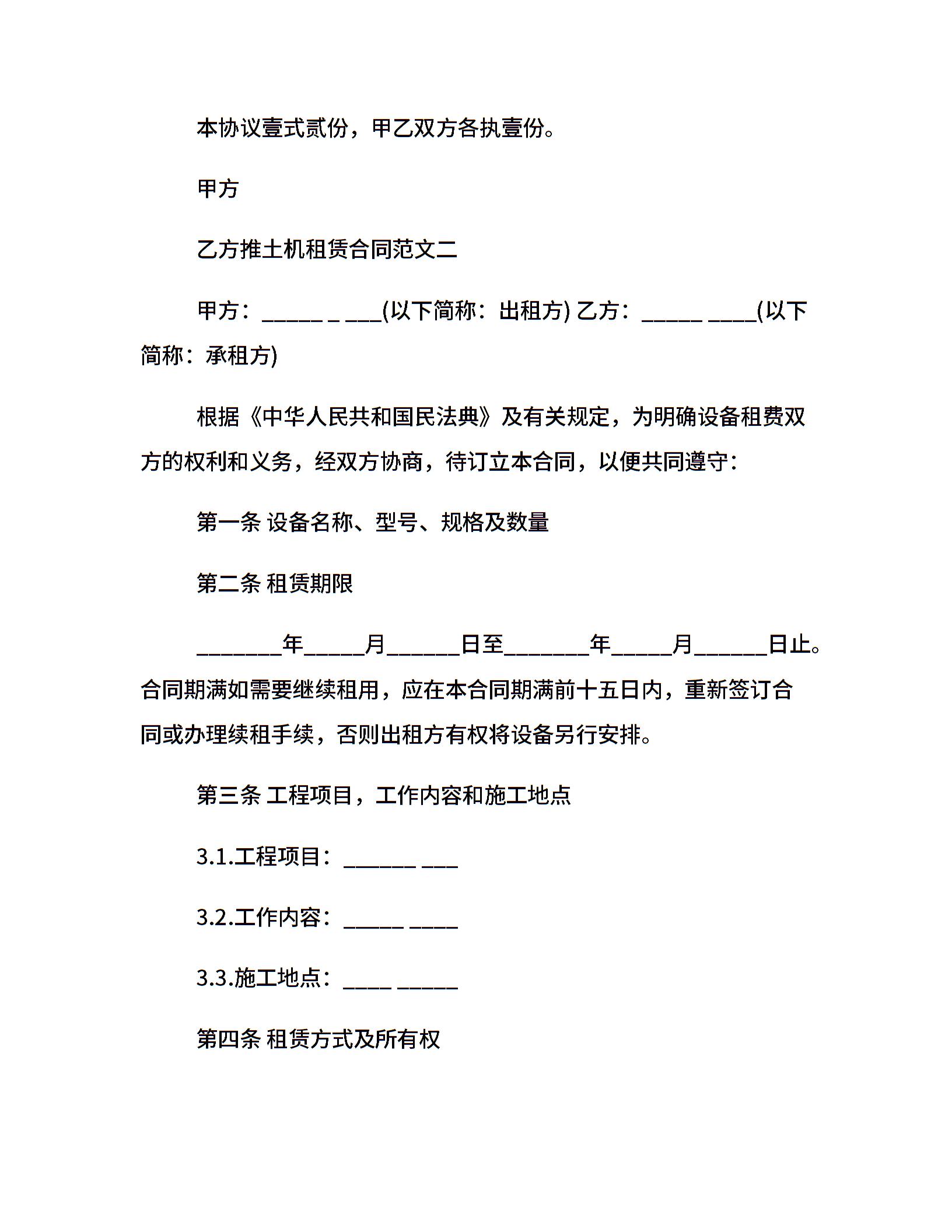 推土机租赁合同