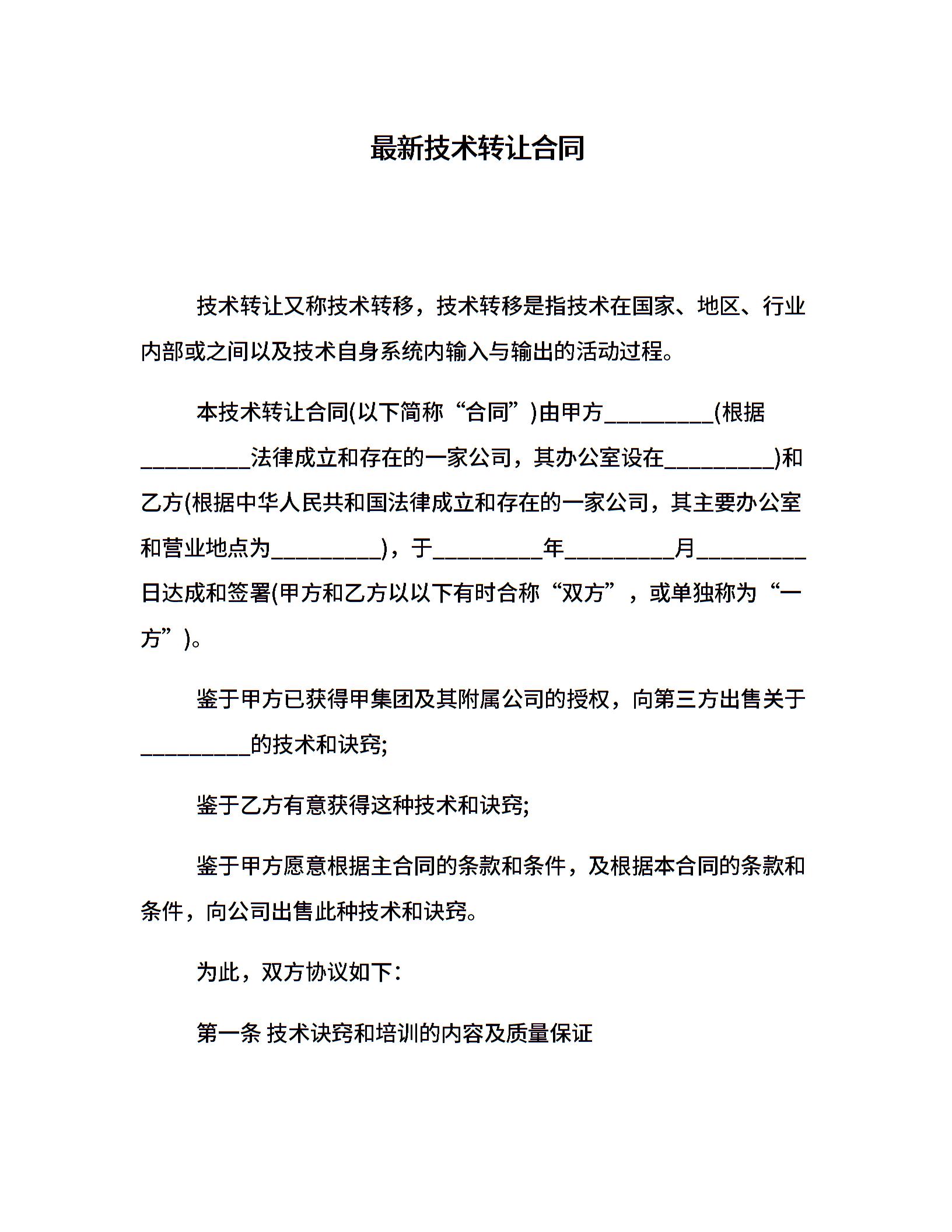 最新技术转让合同