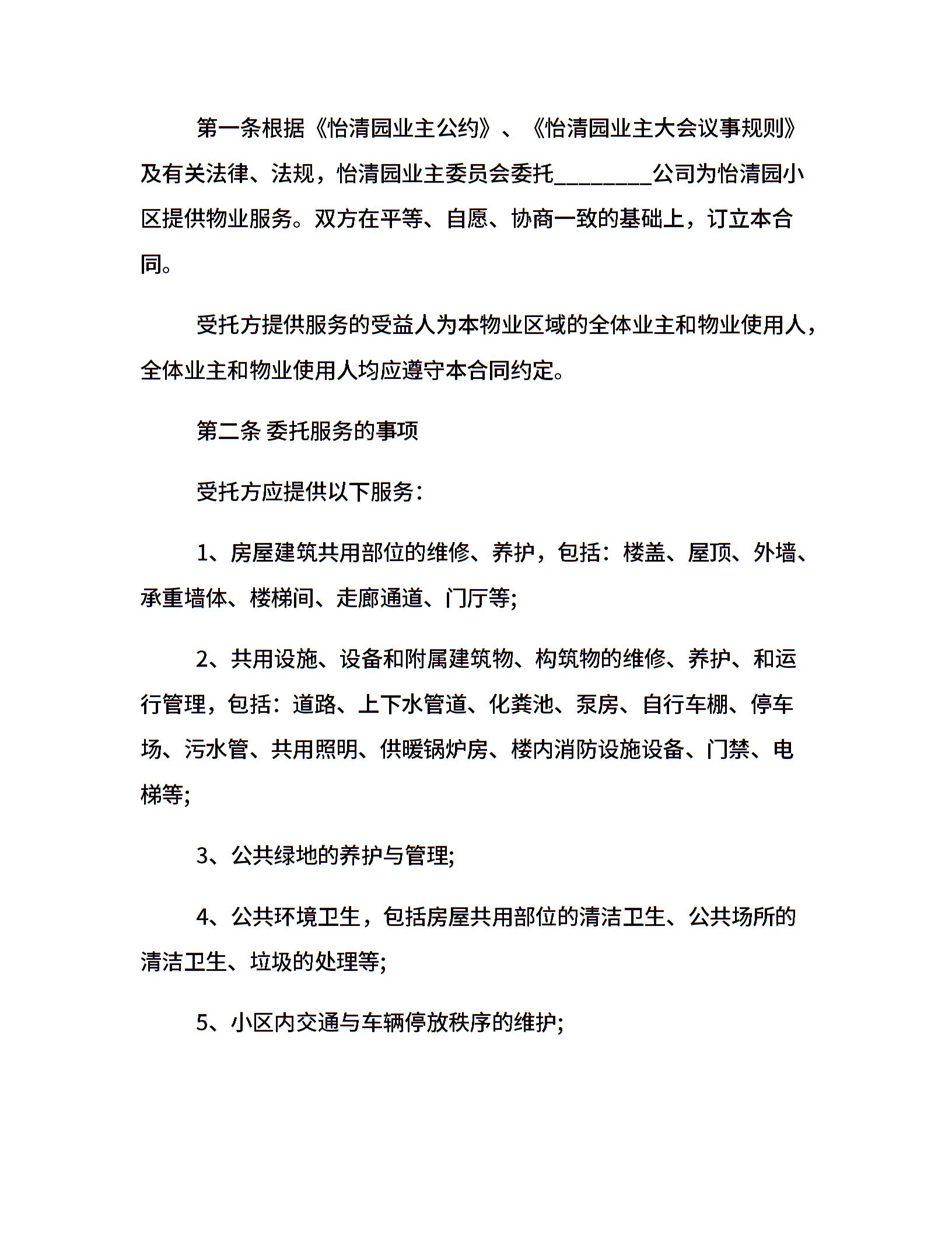 住宅小区物业服务合同