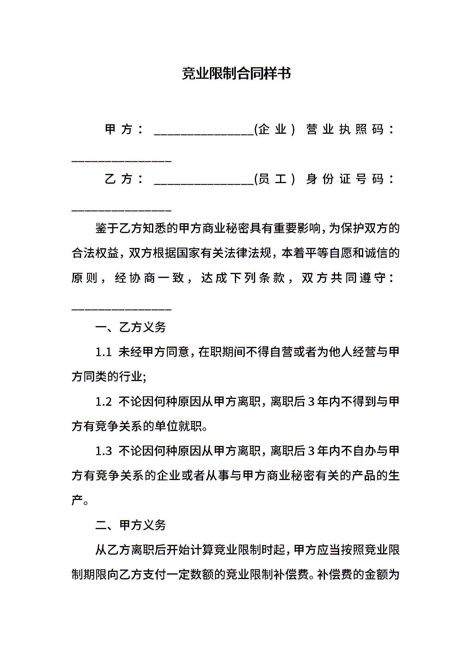 当前位置:量子办公 > 合同模板 > 竞业协议 >