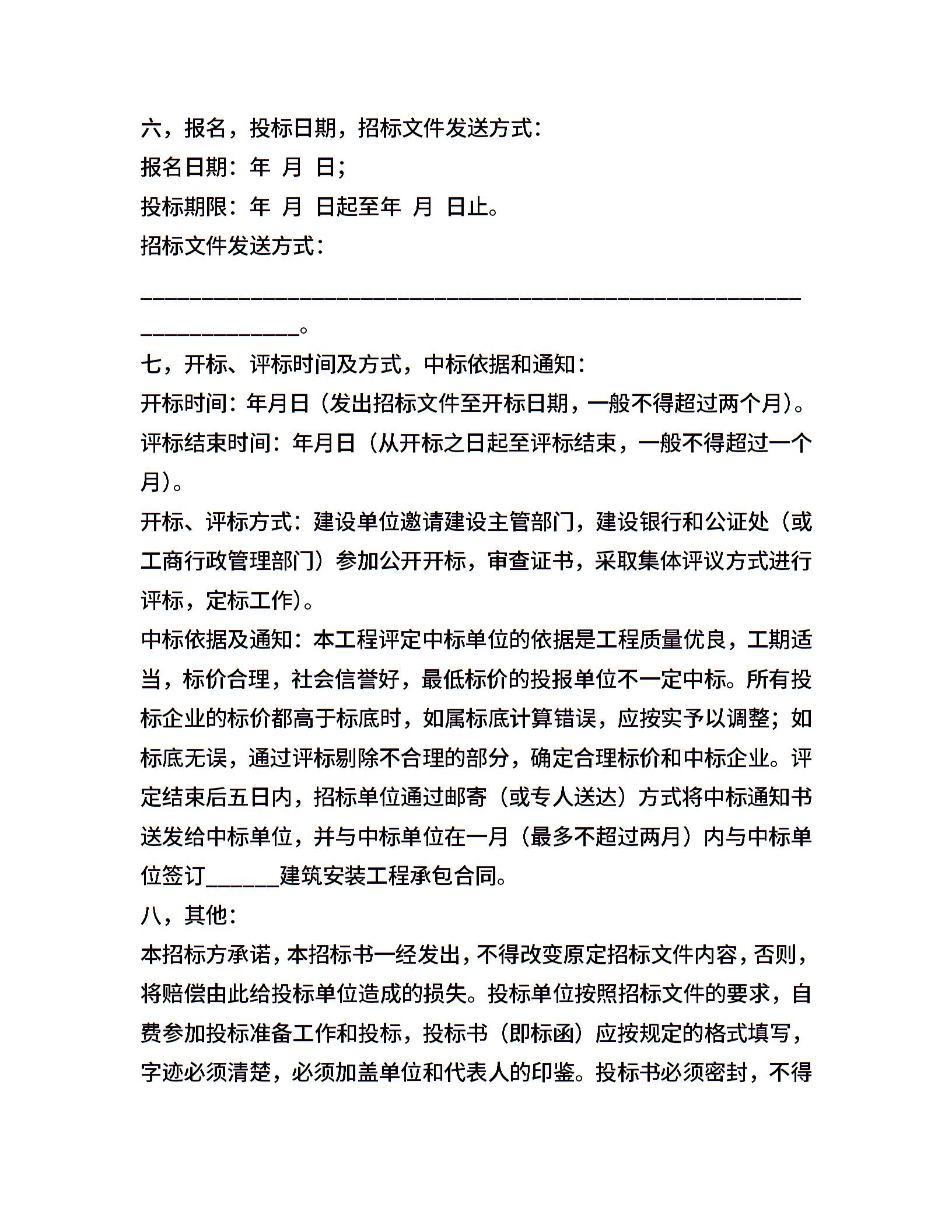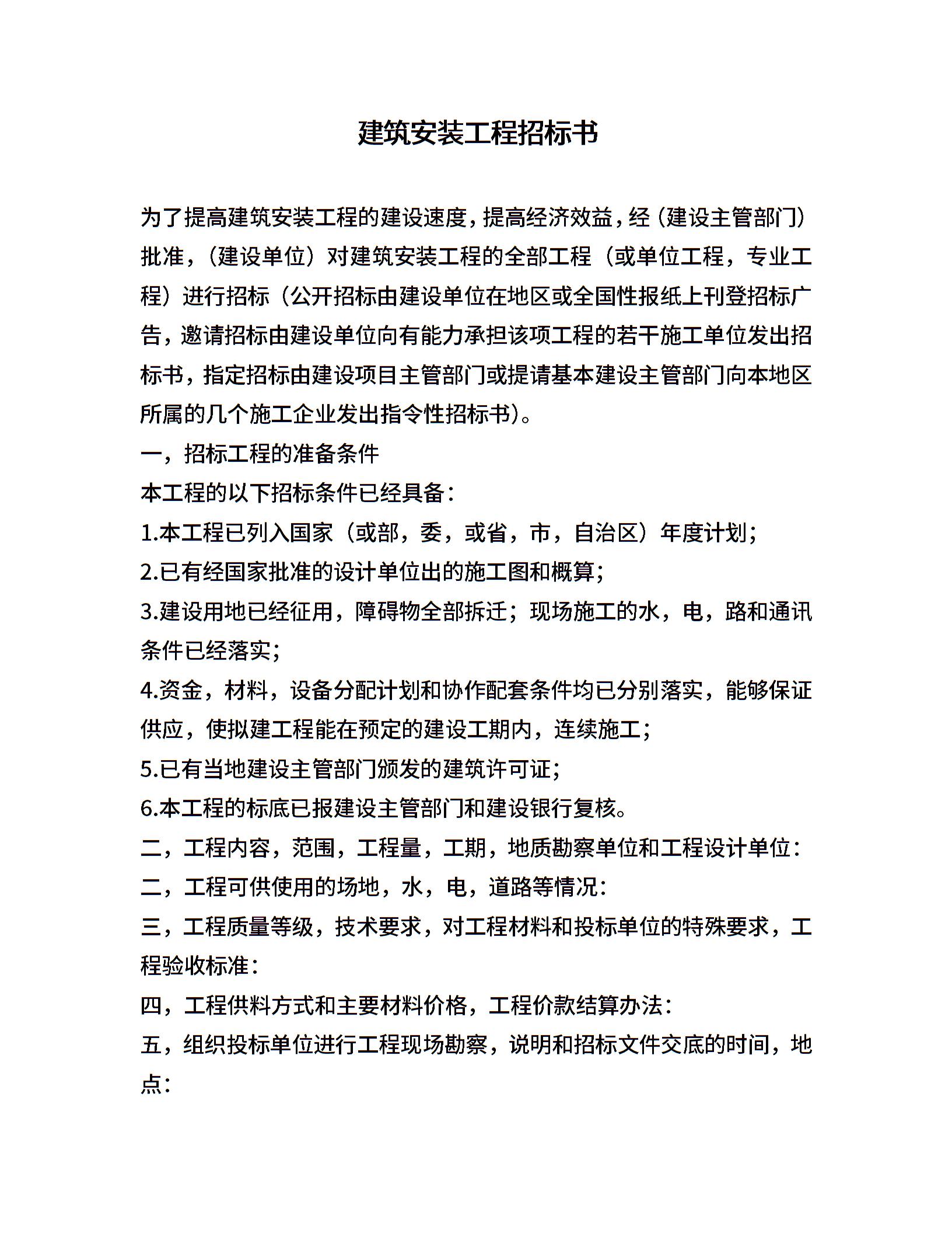 建筑安装工程招标书