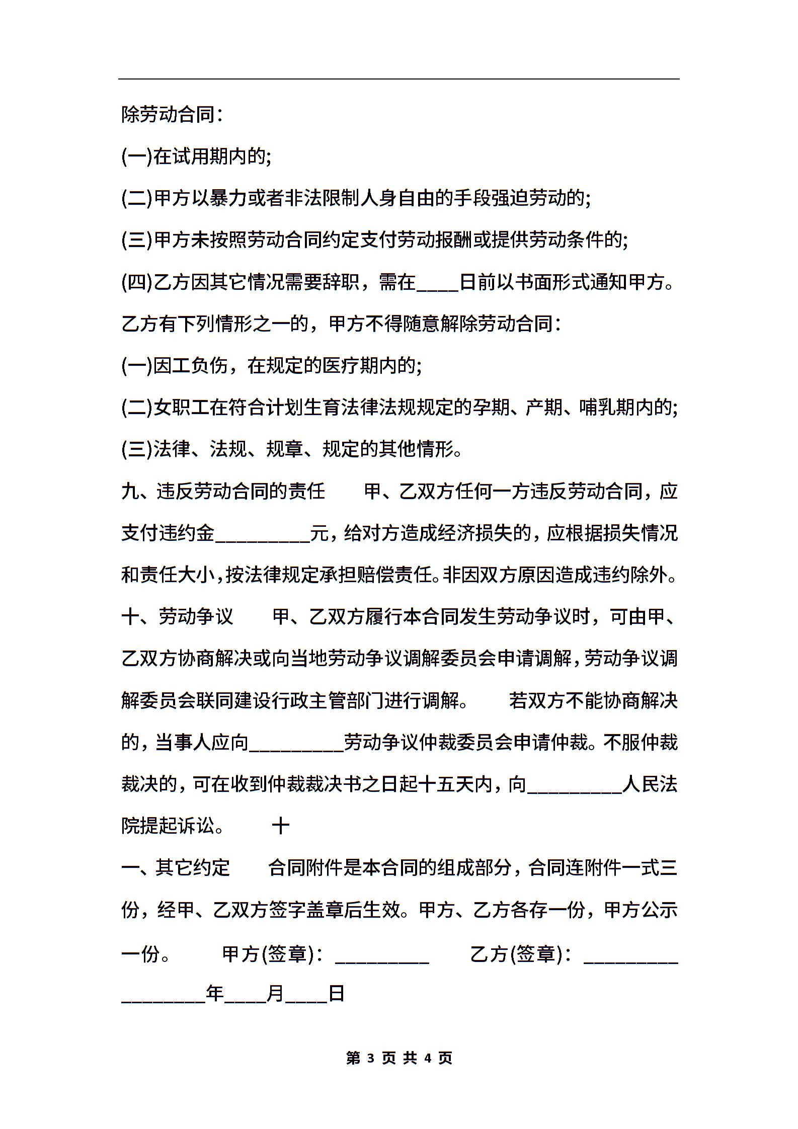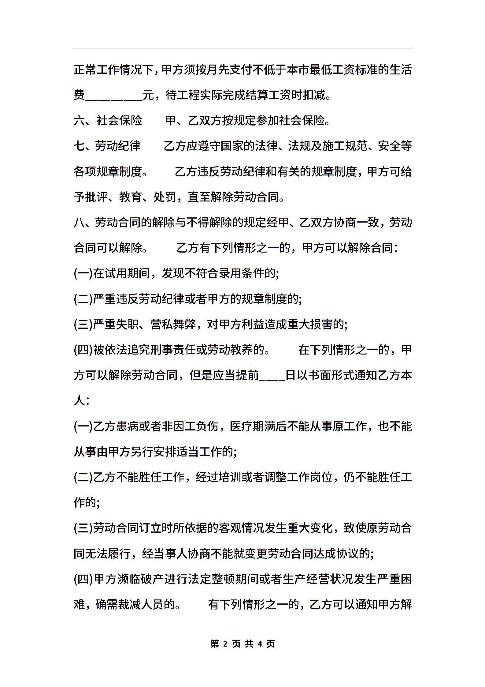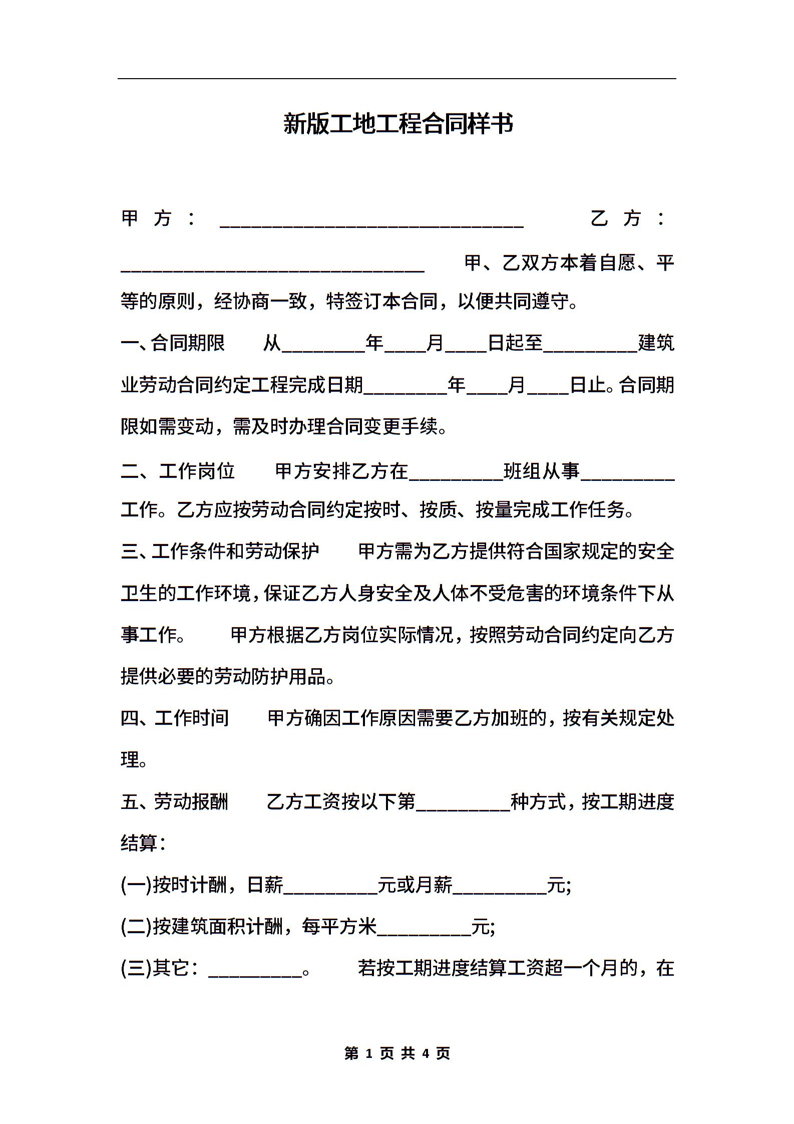 新版工地工程合同样书