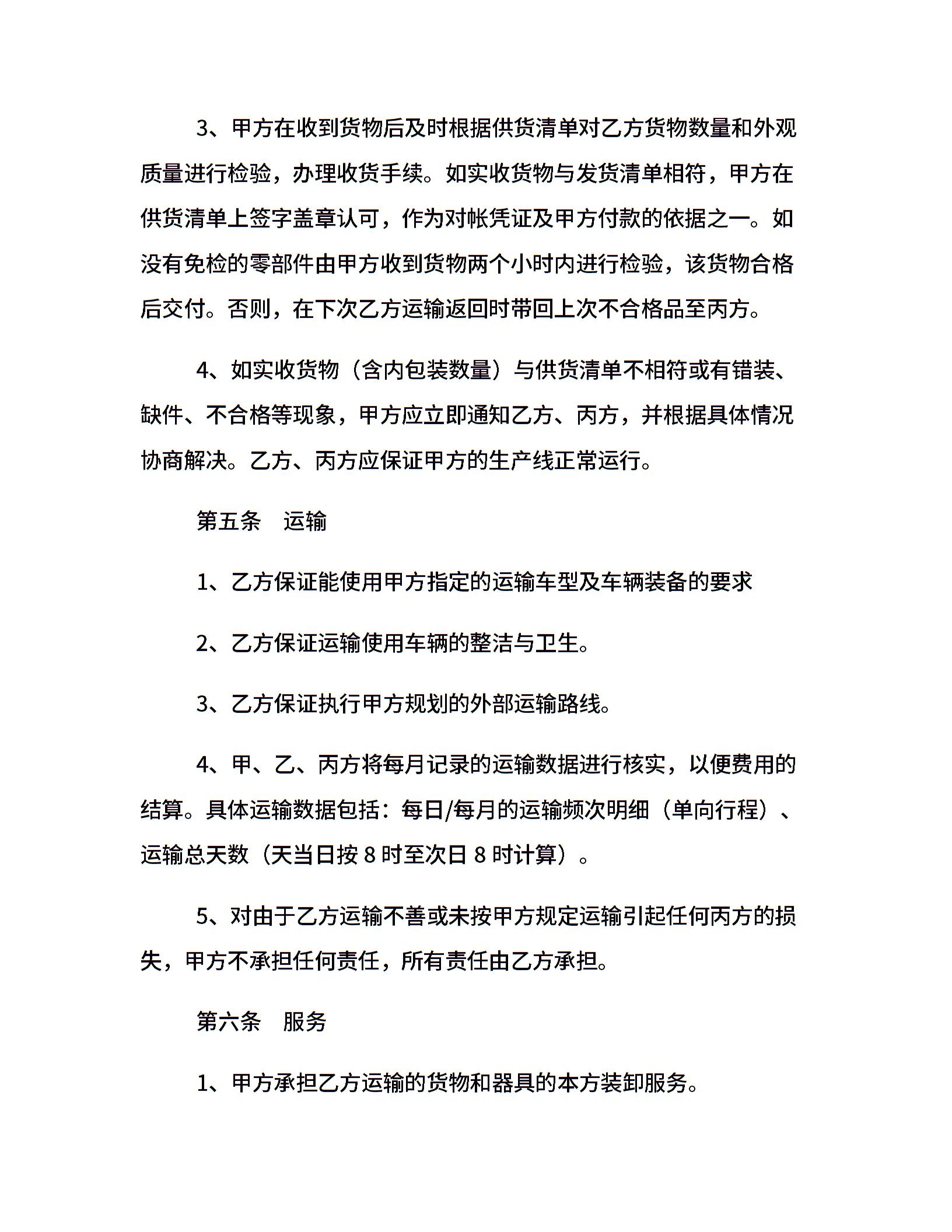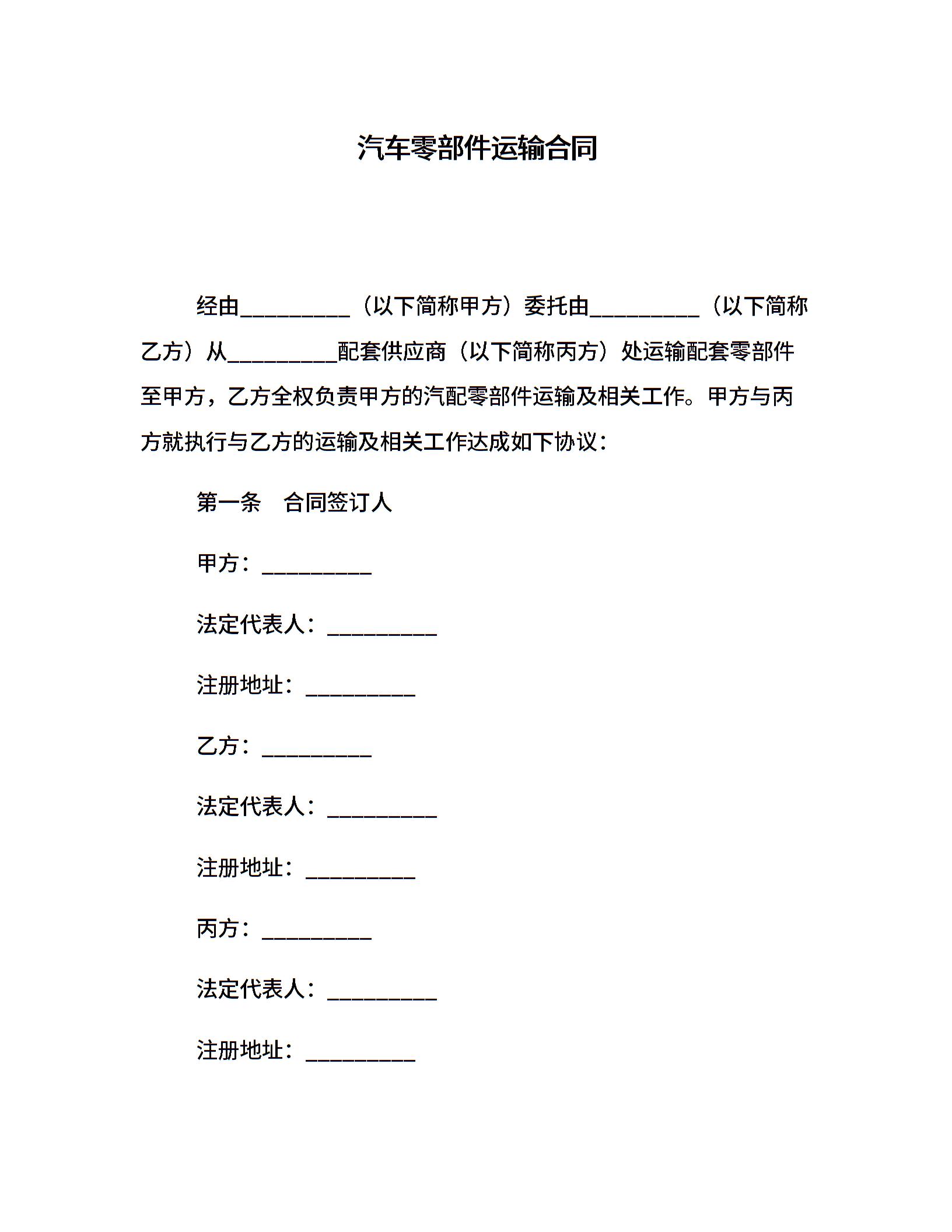 汽车零部件运输合同