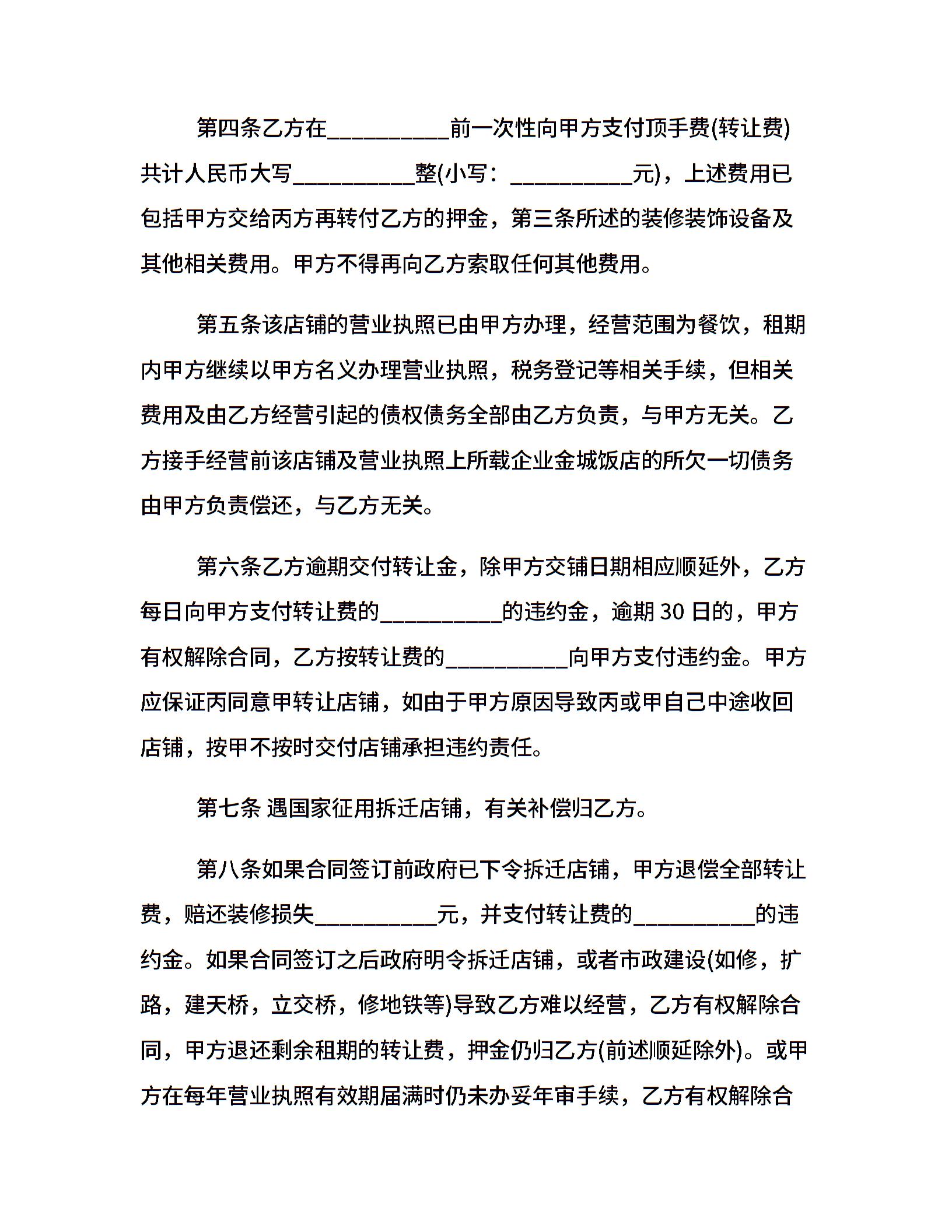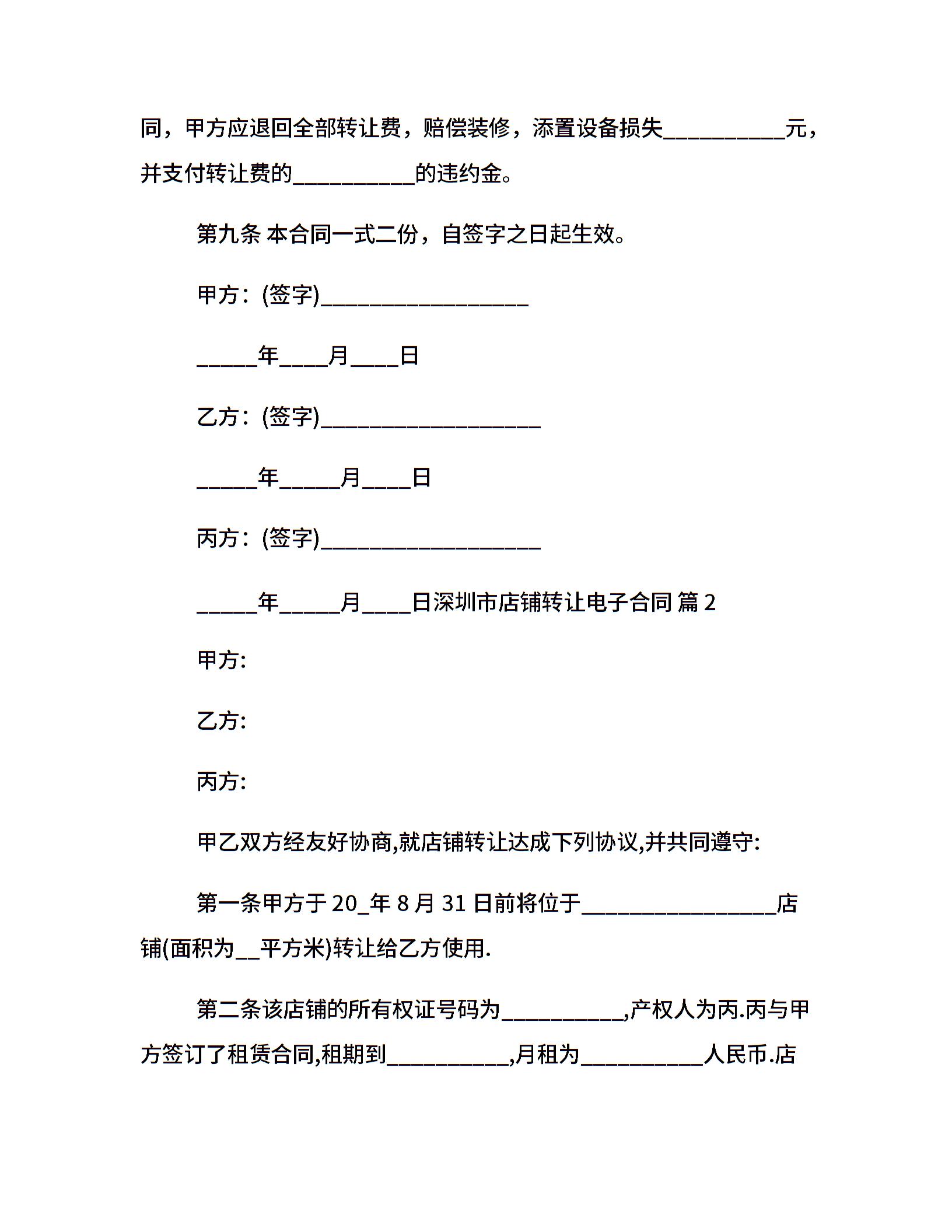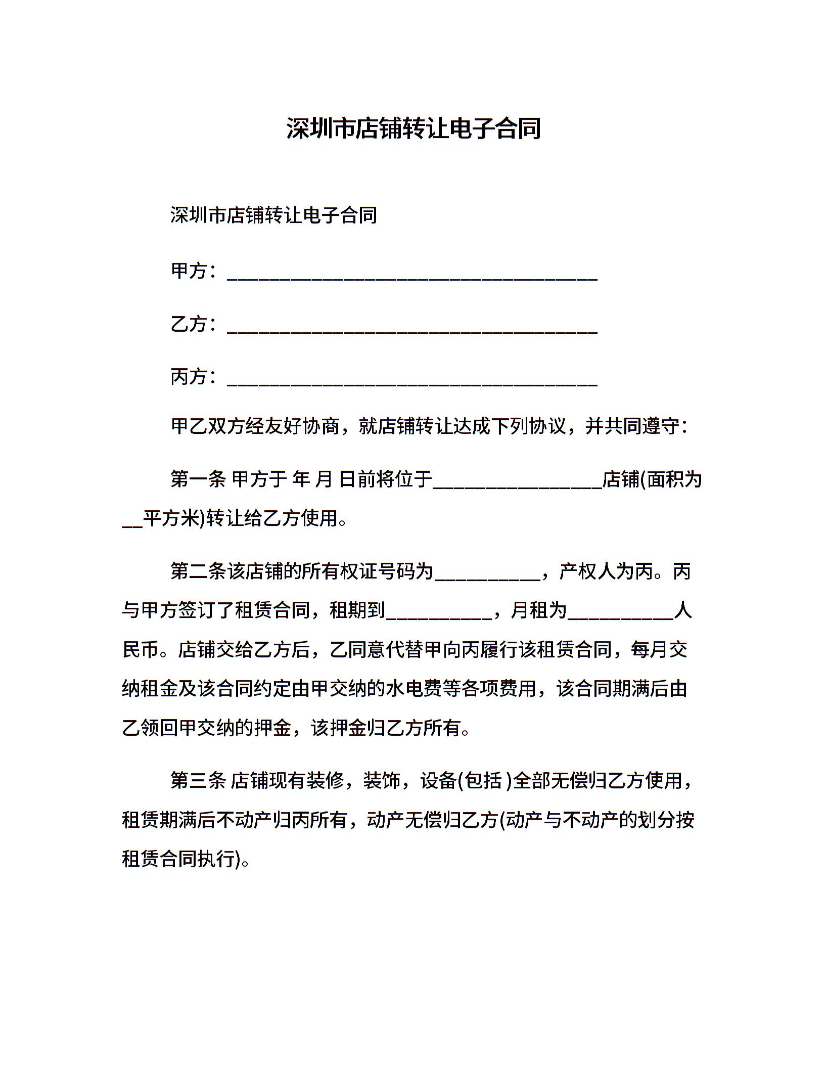 深圳市店铺转让电子合同
