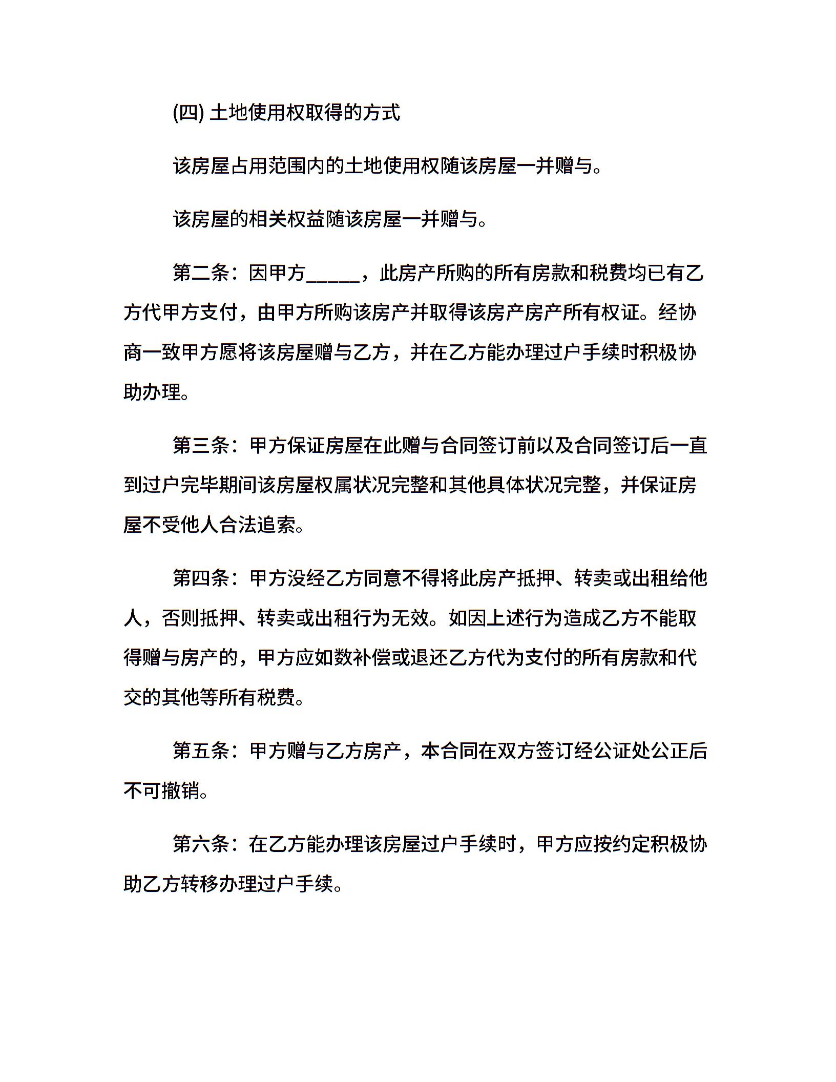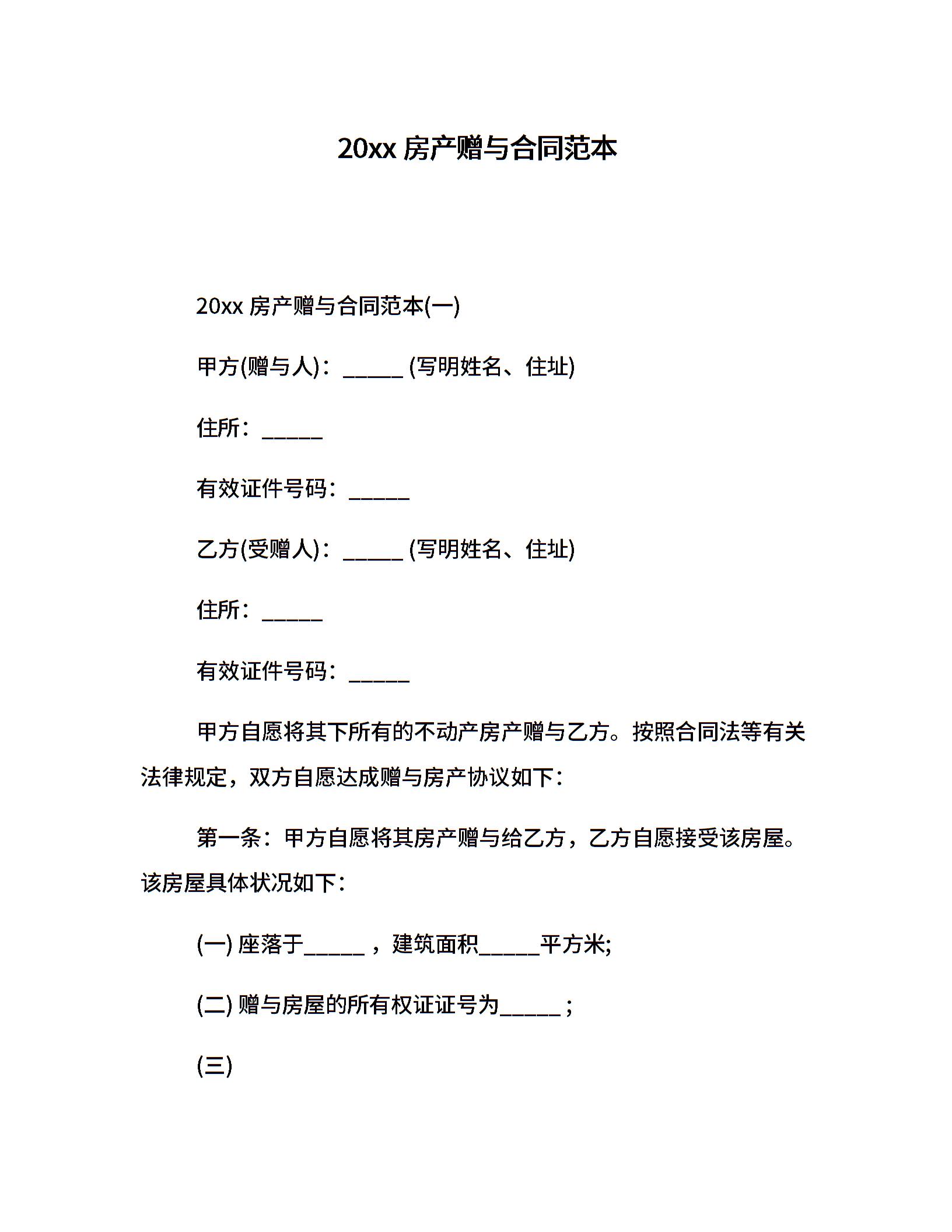 20xx房产赠与合同范本