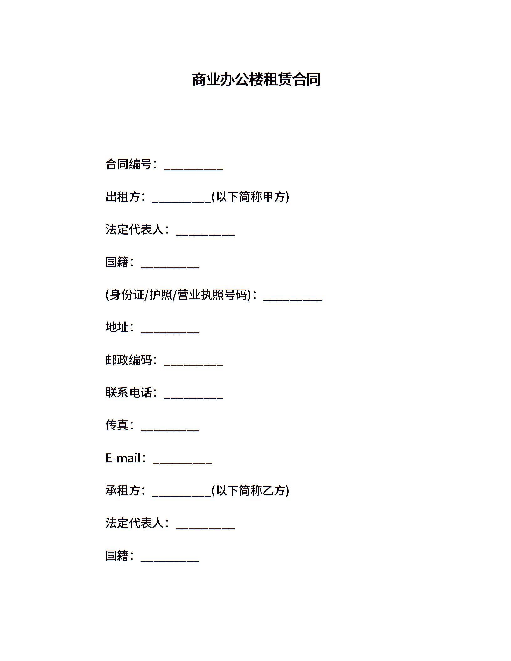 商业办公楼租赁合同