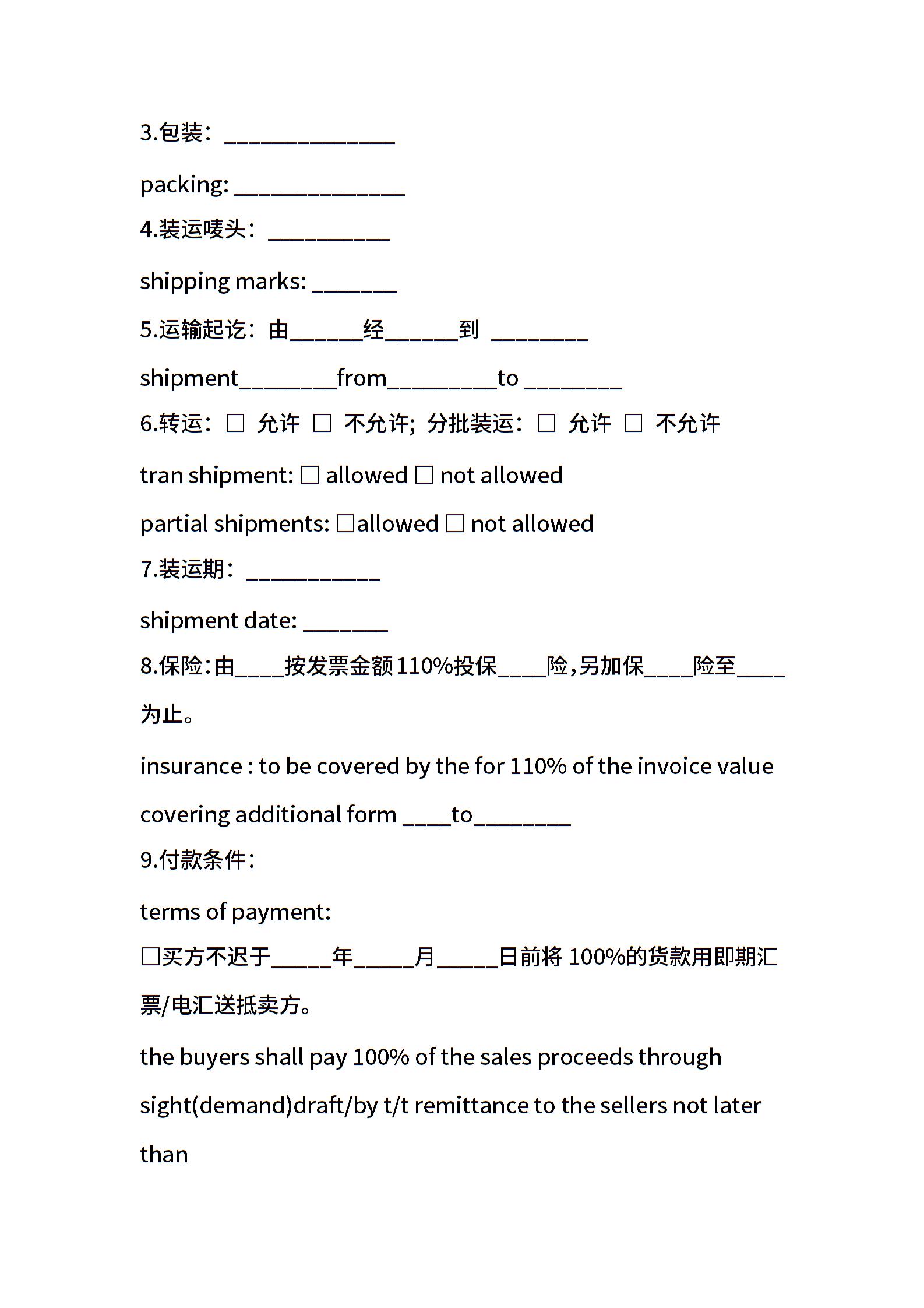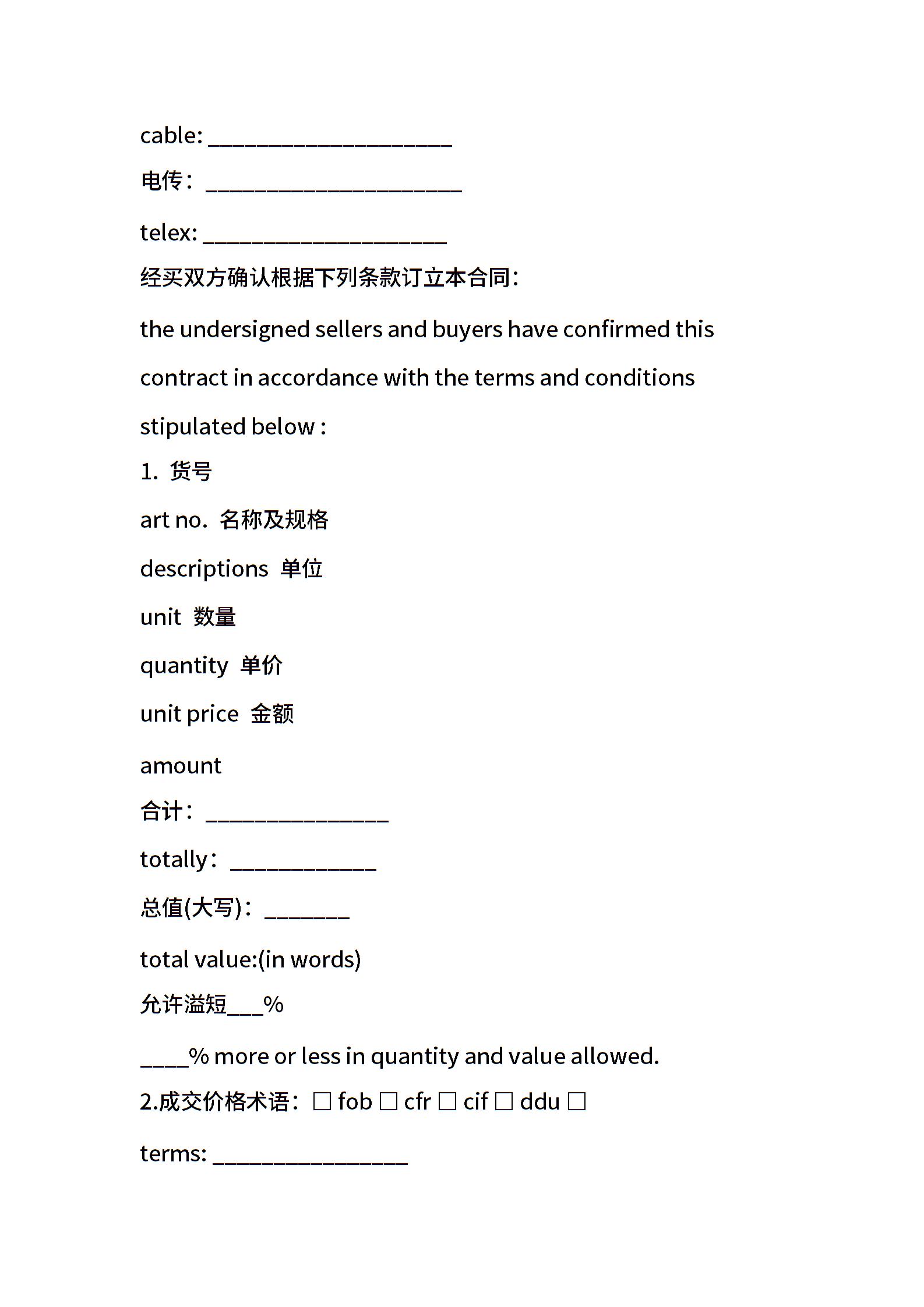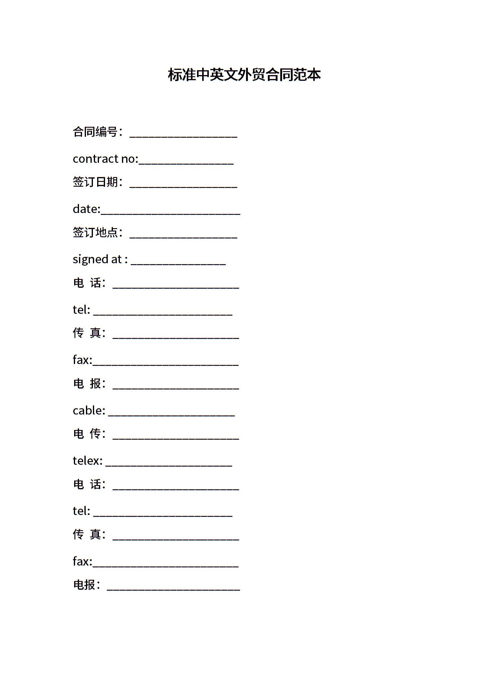 标准中英文外贸合同范本