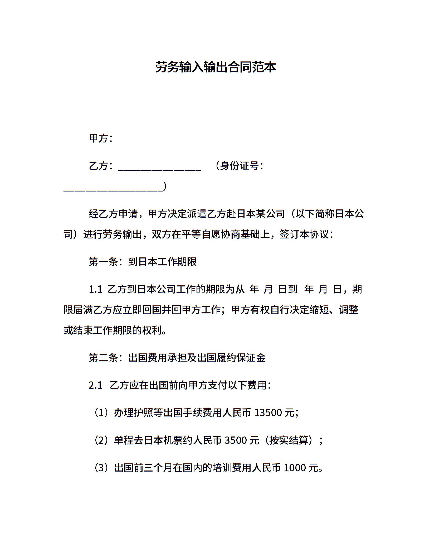 劳务输入输出合同范本
