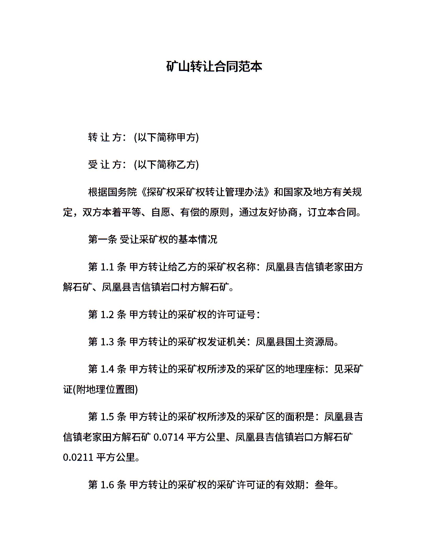矿山转让合同范本