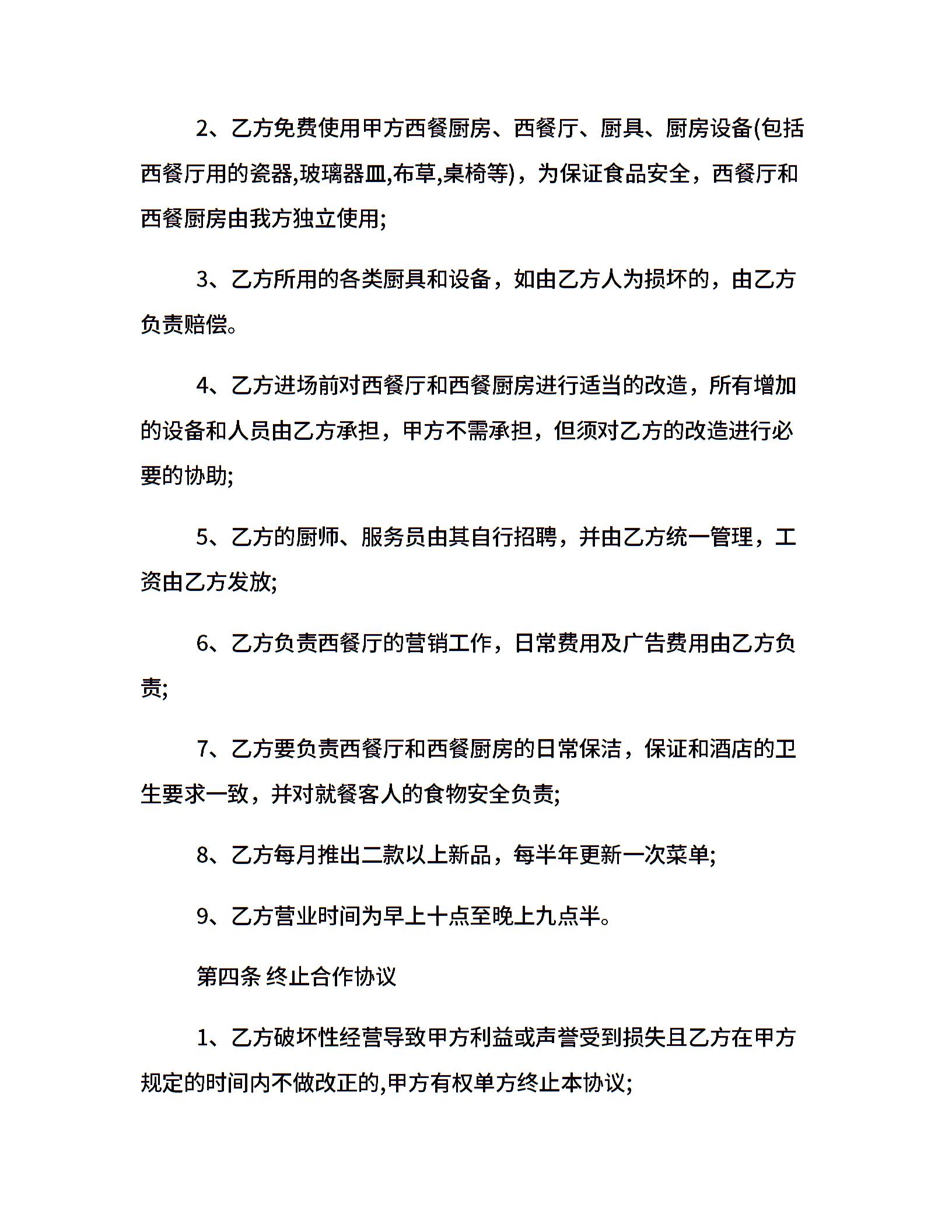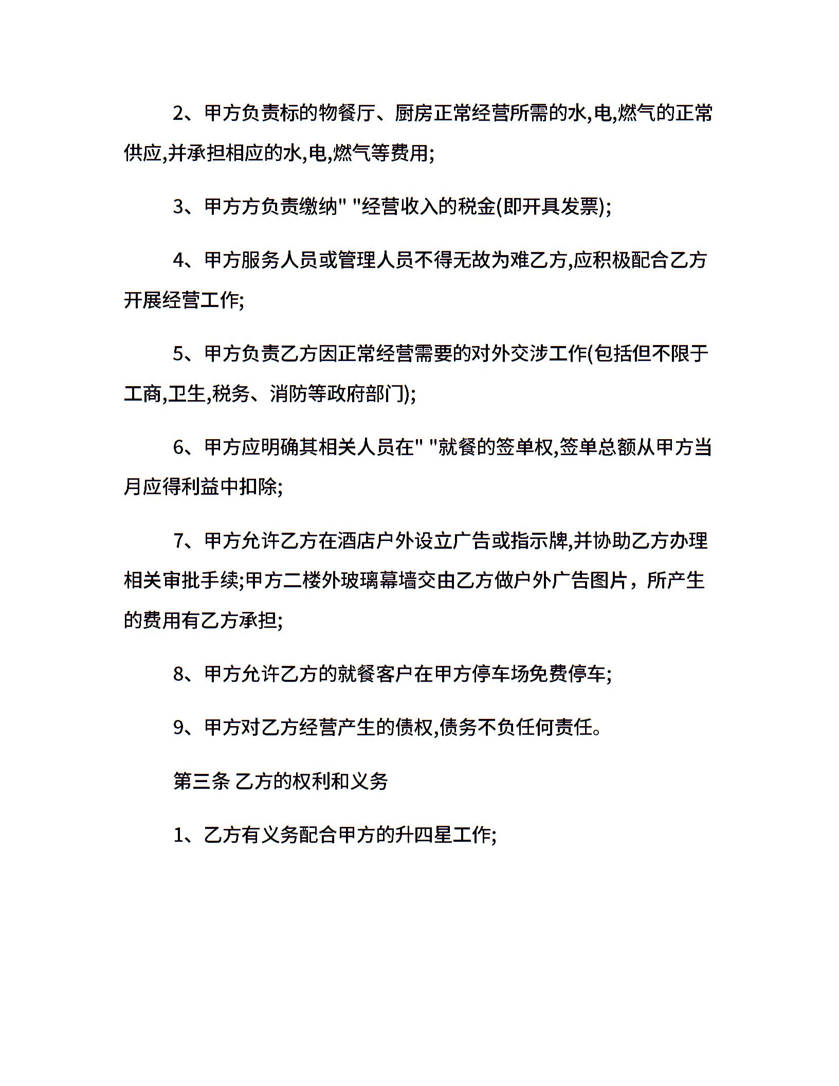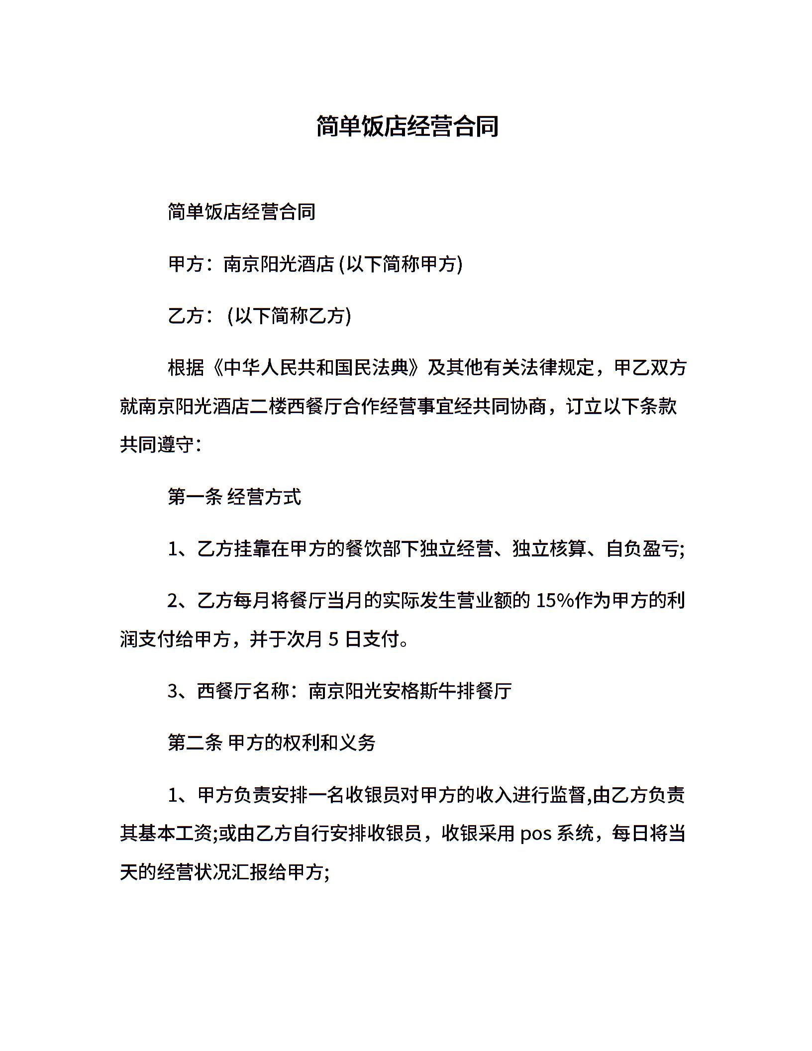 简单饭店经营合同