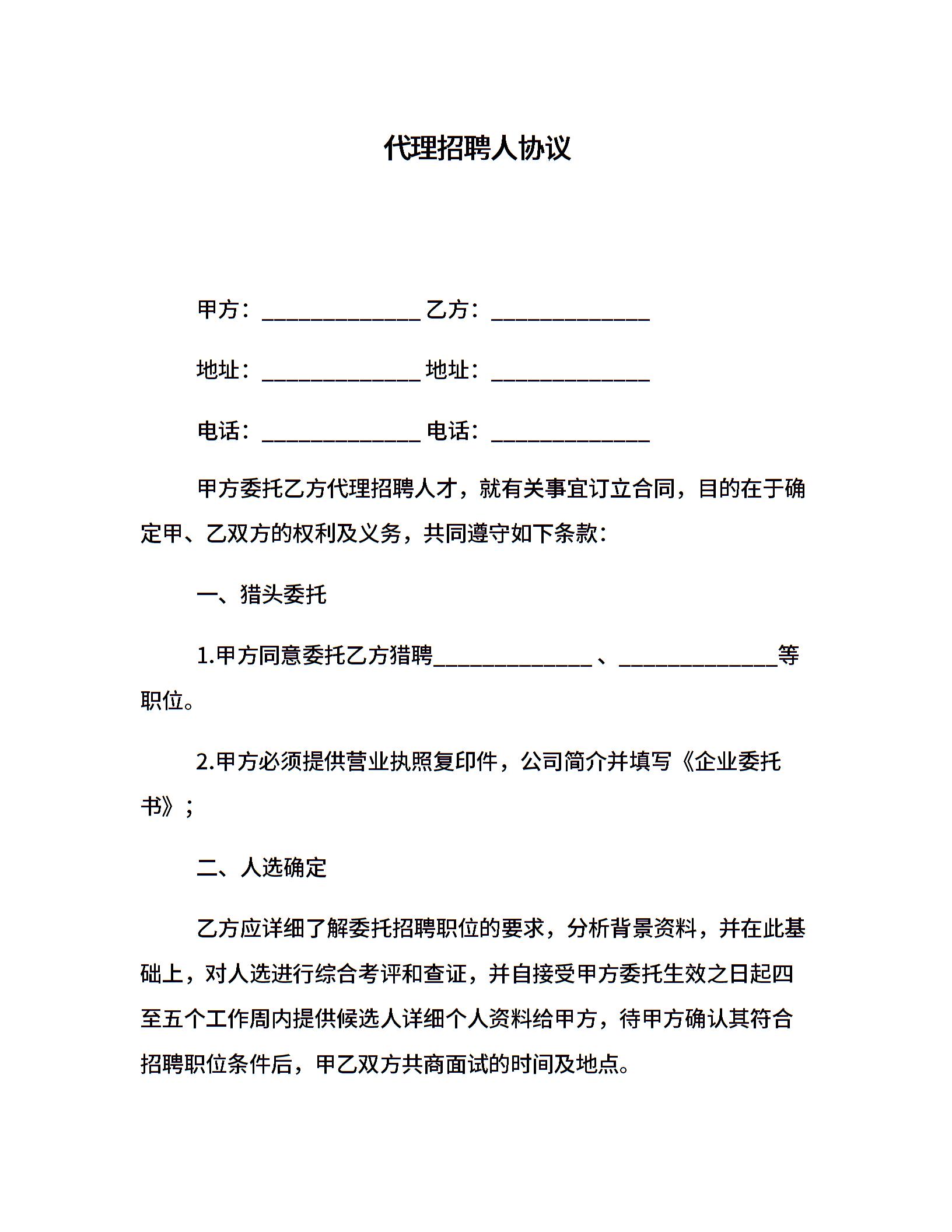 代理招聘人协议