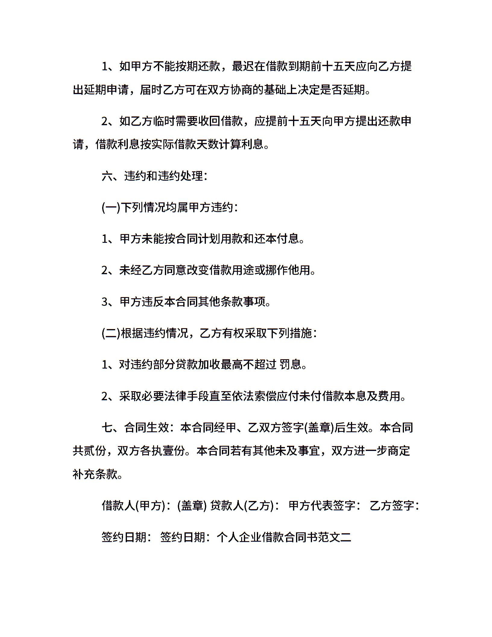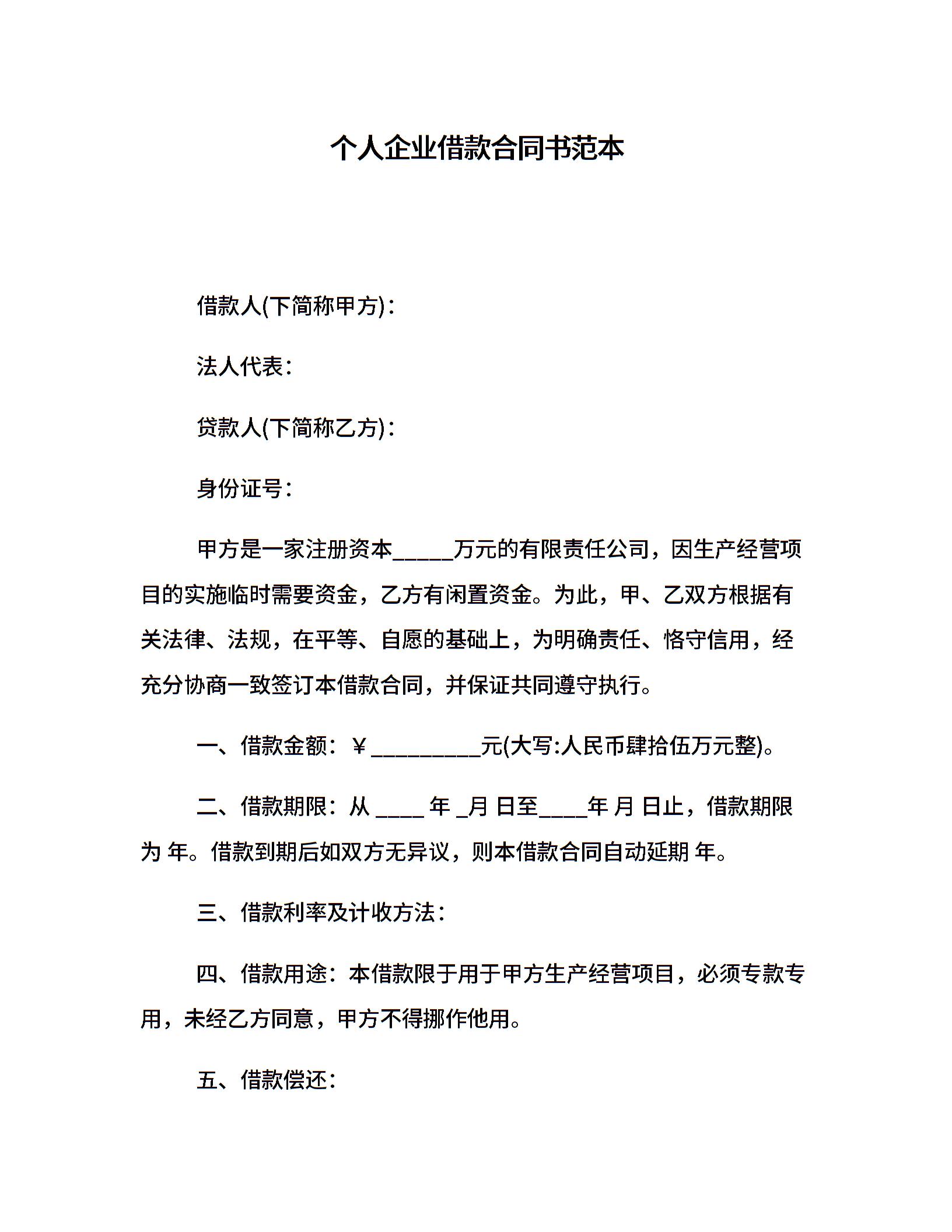个人企业借款合同书范本