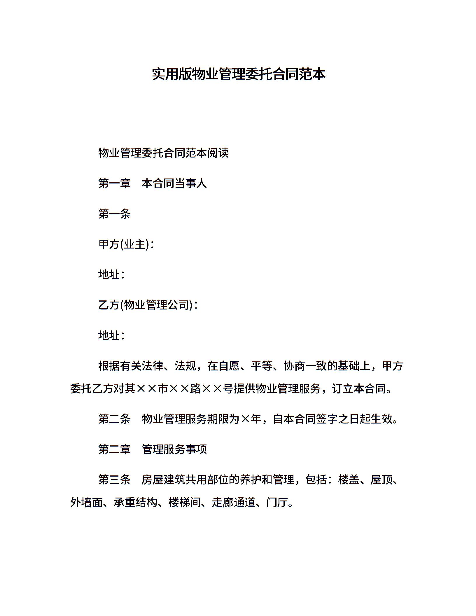 实用版物业管理委托合同范本