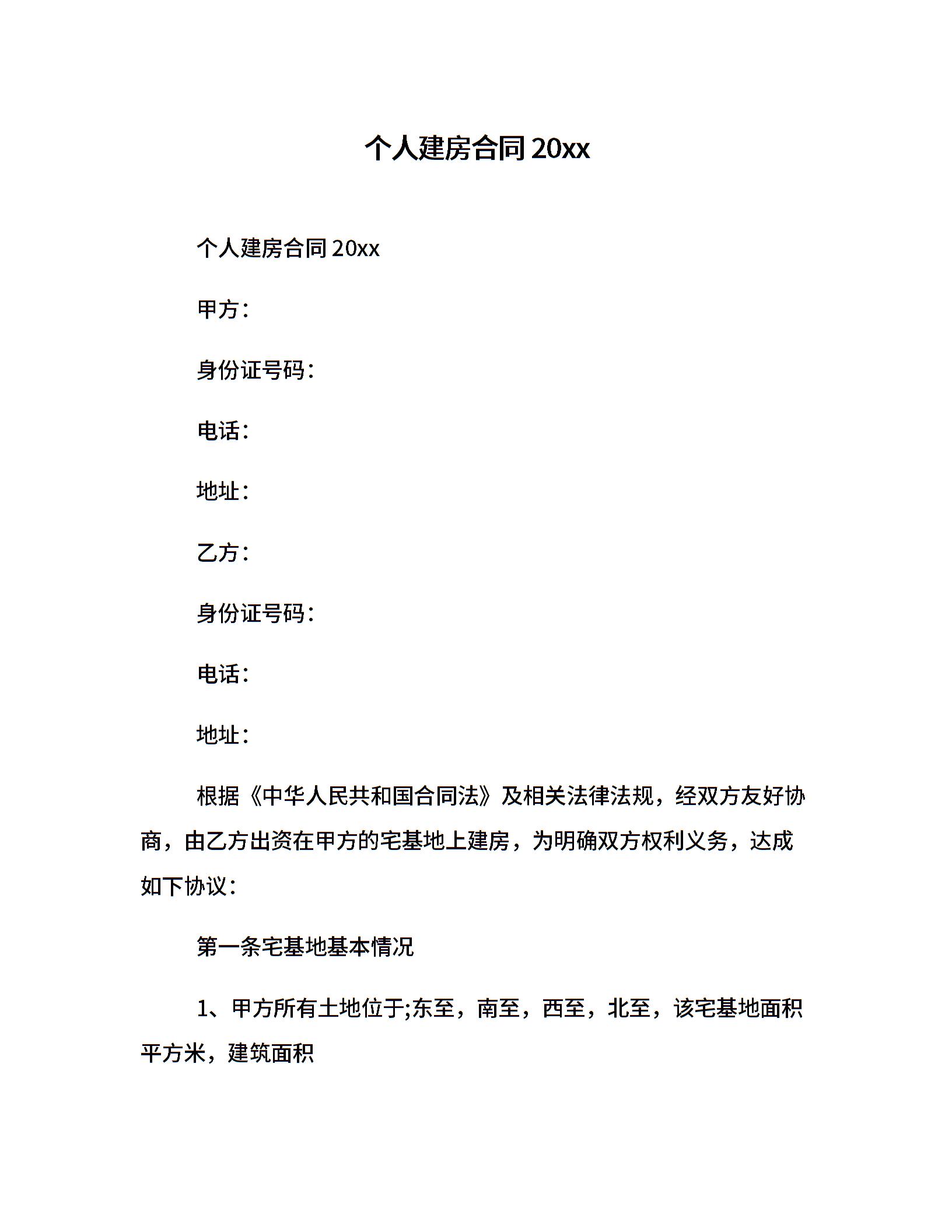 个人建房合同20xx