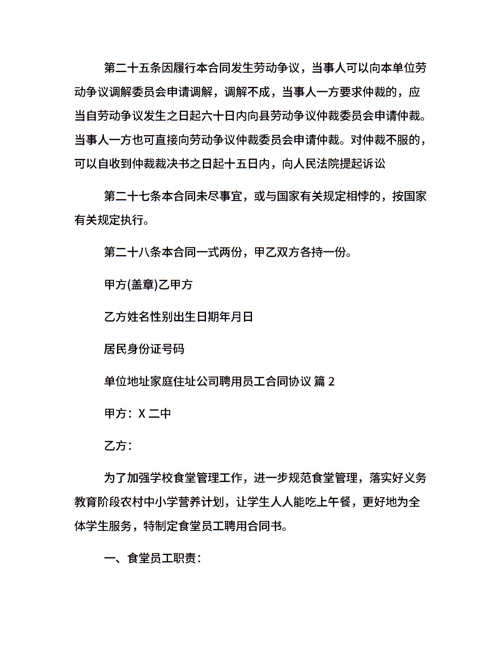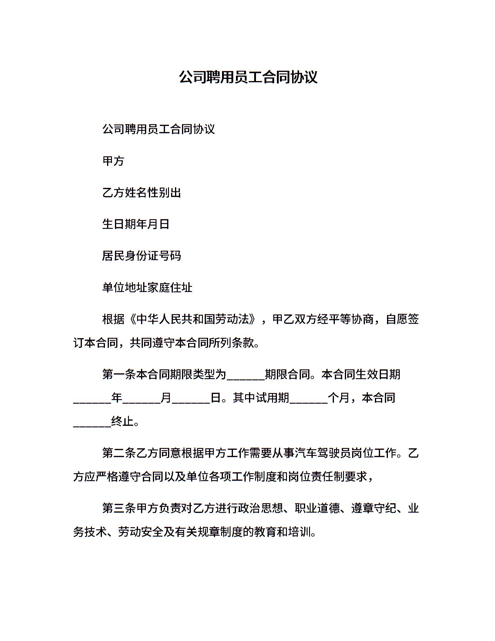 公司聘用员工合同协议