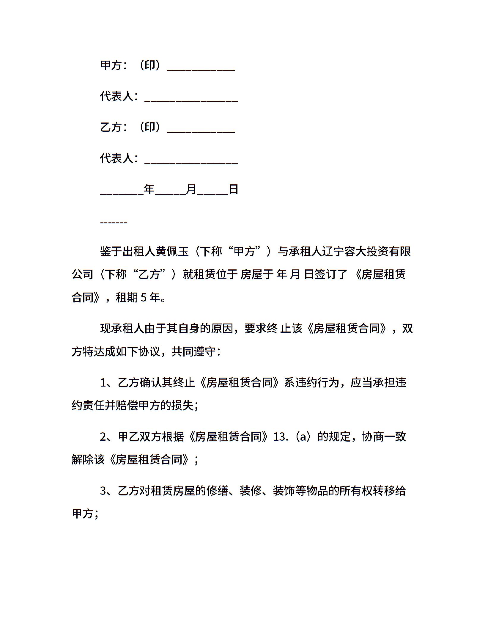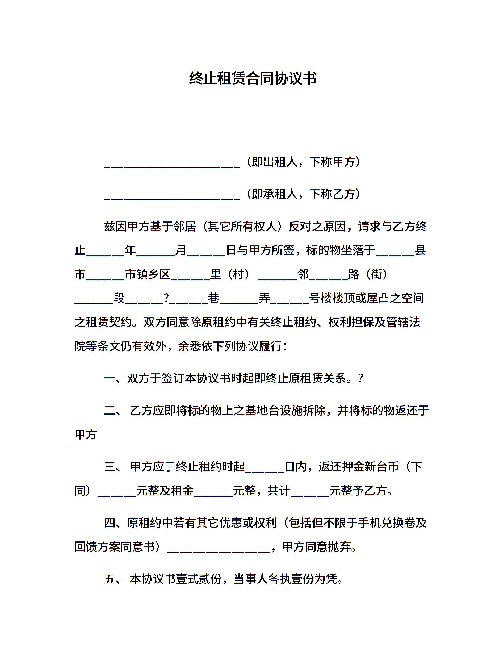 终止租赁合同协议书
