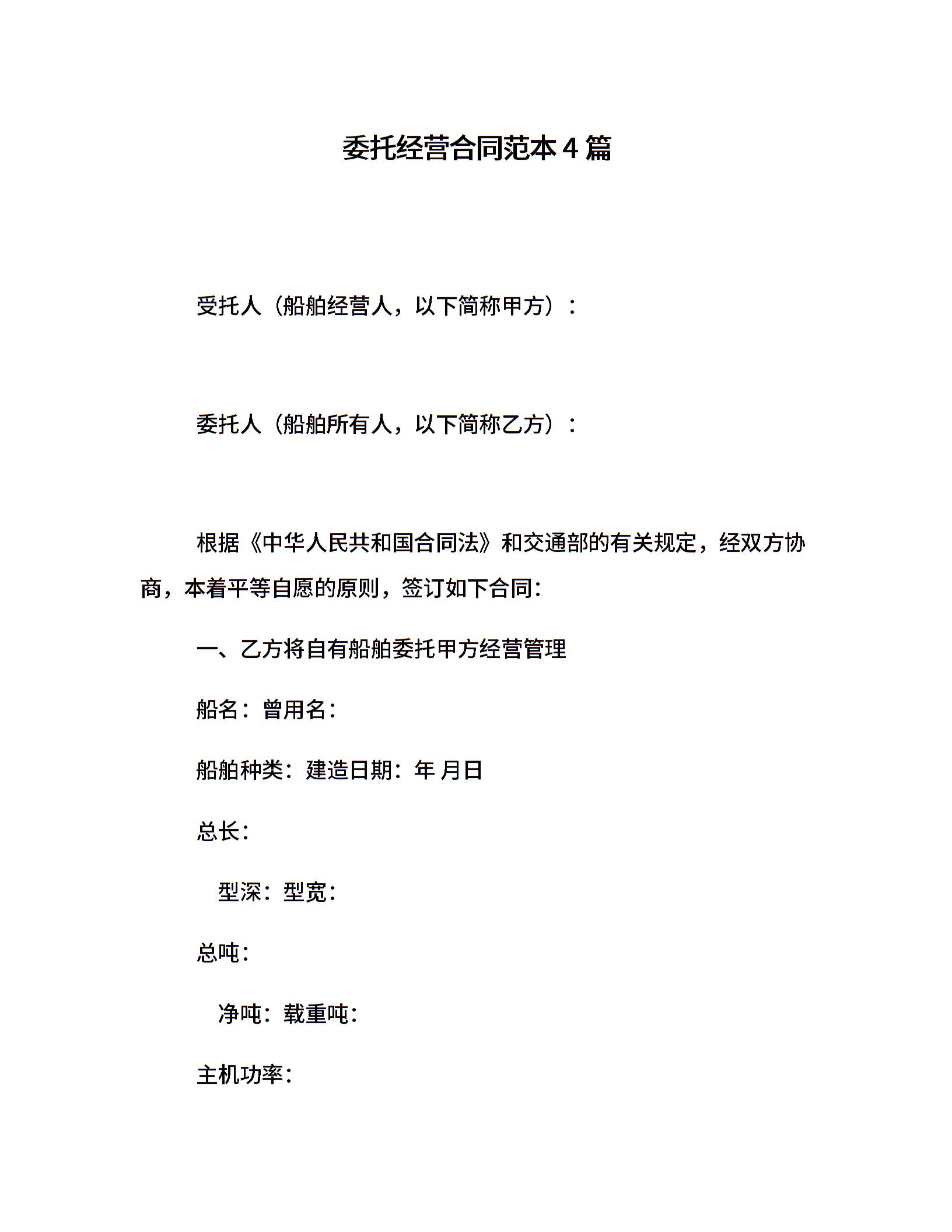 委托经营合同范本4篇